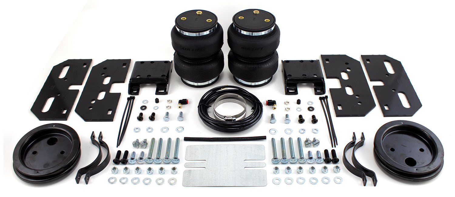 LoadLifter 5000 ULTIMATE Heavy Half-Ton adjustable air spring kits feature all of the benefits of our heaviest rated air spring with the addition of an internal jounce bumper inside the spring for the ultimate in ride comfort. An Air Lift exclusive product! Fits vehicles with in-bed hitches. Tow and haul the heaviest loads with safety and comfort with LoadLifter 5000 ULTIMATE Heavy Half-Ton adjustable air spring kits. Works with vehicle's leaf springs to provide your half-ton exceptional rear load leveling capacity and keeps the vehicle riding stable, level and comfortable whether loaded or unloaded. Fully adjustable from 5 to 100 PSI. The closed-cell urethane foam jounce bumper inside the ULTIMATE Heavy Half-Ton adjustable air springs provide a cushion of air that absorbs shock, eliminates harsh jarring on rough roads and protects vehicles carrying heavy loads. Never bottom out again with the ULTIMATE! LoadLifter 5000 ULTIMATE Heavy Half-Ton adjustable air springs are maintenance free! Safely run with zero air pressure because of the internal jounce bumper. Replaces factory jounce bumper that is sometimes removed when adding air springs.