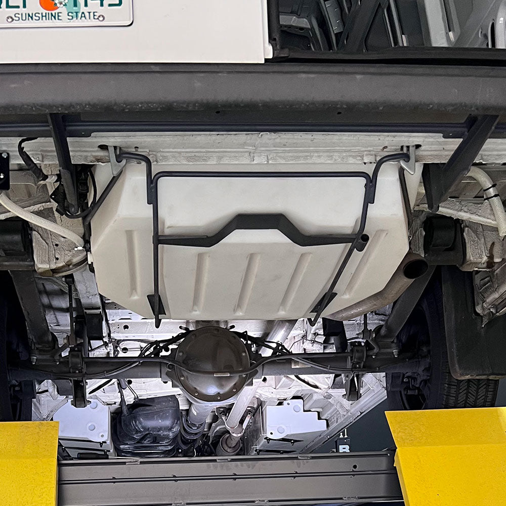 This water tank wont fit the 170" EXT or with hitches.