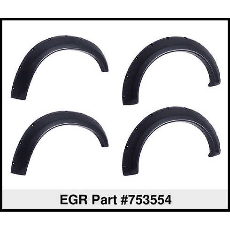 EGR Fender Flares are manufactured to OEM Quality, and are robotically trimmed to give you the most precise fitment in the industry. Made from raw, virgin material, you know you're only getting the good stuff here at EGR. All EGR Fender Flares feature an easy, no-drill installation process; which will have you showing off your truck in no time. Don't get faded with the other guy's; EGR Fender Flares all feature a UV protectant film that will keep your flares looking new for years to come. When it comes to EGR, Premium Quality would be an understatement, it's the Standard!