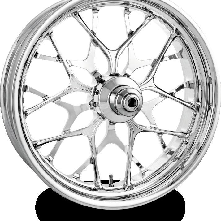 Departing from a traditional mindset of design, Performance Machine took a classic, elegant spoke design and spun it out of this world. They pushed the boundaries of manufacturing capabilities to create a complex yet refined timeless design. The perfectly balanced amount of contrast and detail creates a unique depth and illusion. From a distance the wheel gives the appearance of simplicity, but as you are drawn in closer the intricacy of the wheel is revealed.