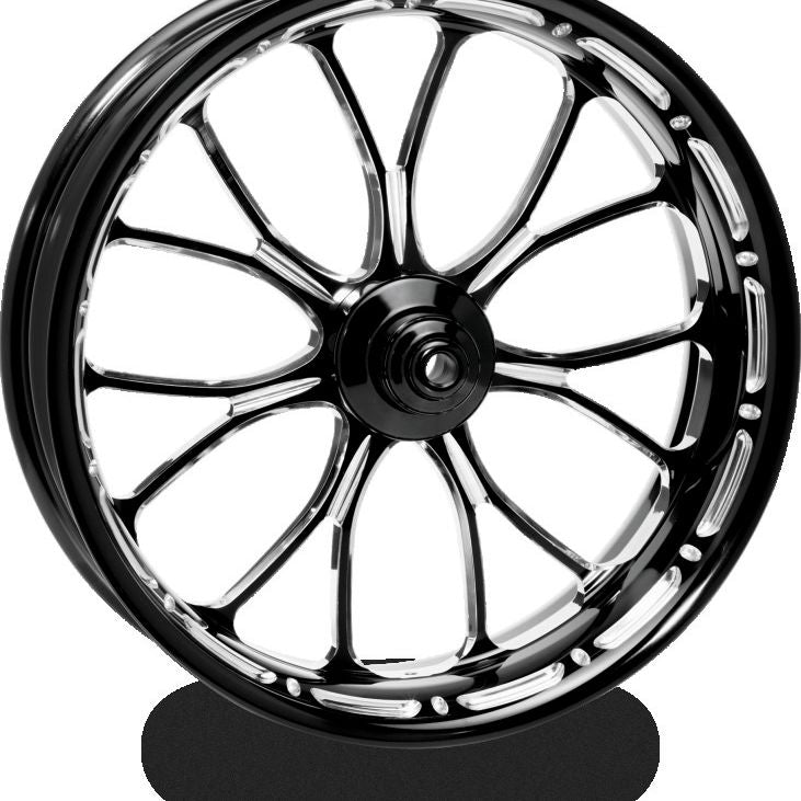 The Heathen wheel begins as 7 spokes and splits into 14 ornate tendrils before blending into the rim center and then follows with a complimentary design on the outer edge of the subtly curving rim face.
