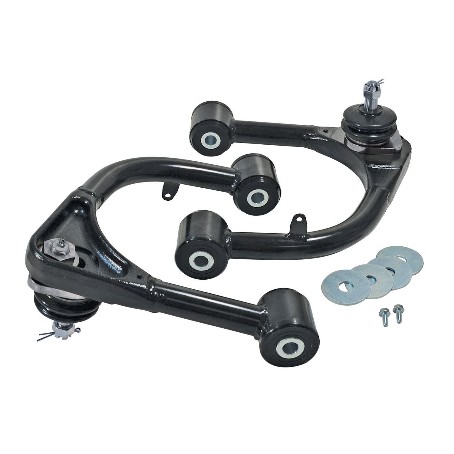 Improve droop travel, drivability and tire wear as well as adjusting tire position in your wheel well with SPC's adjustable front upper control arms for Toyota Land Cruisers (200 Series). Featuring our long-life maintainable ball joint and SpecRide bushings, this arm is designed to correct alignment angles while maintaining factory ride quality. SPC's integrated tubular and cast steel design provides the strength and durability needed for most demanding environments. These remove and replace arms are available in pairs for lifted and off-road applications.