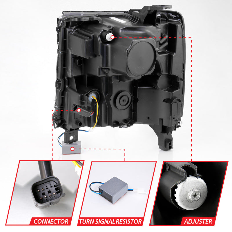 ANZO 16-18 Chevy Silverado 1500 (Factory HID Models ONLY) Full LED Proj Headlights Black - Pair