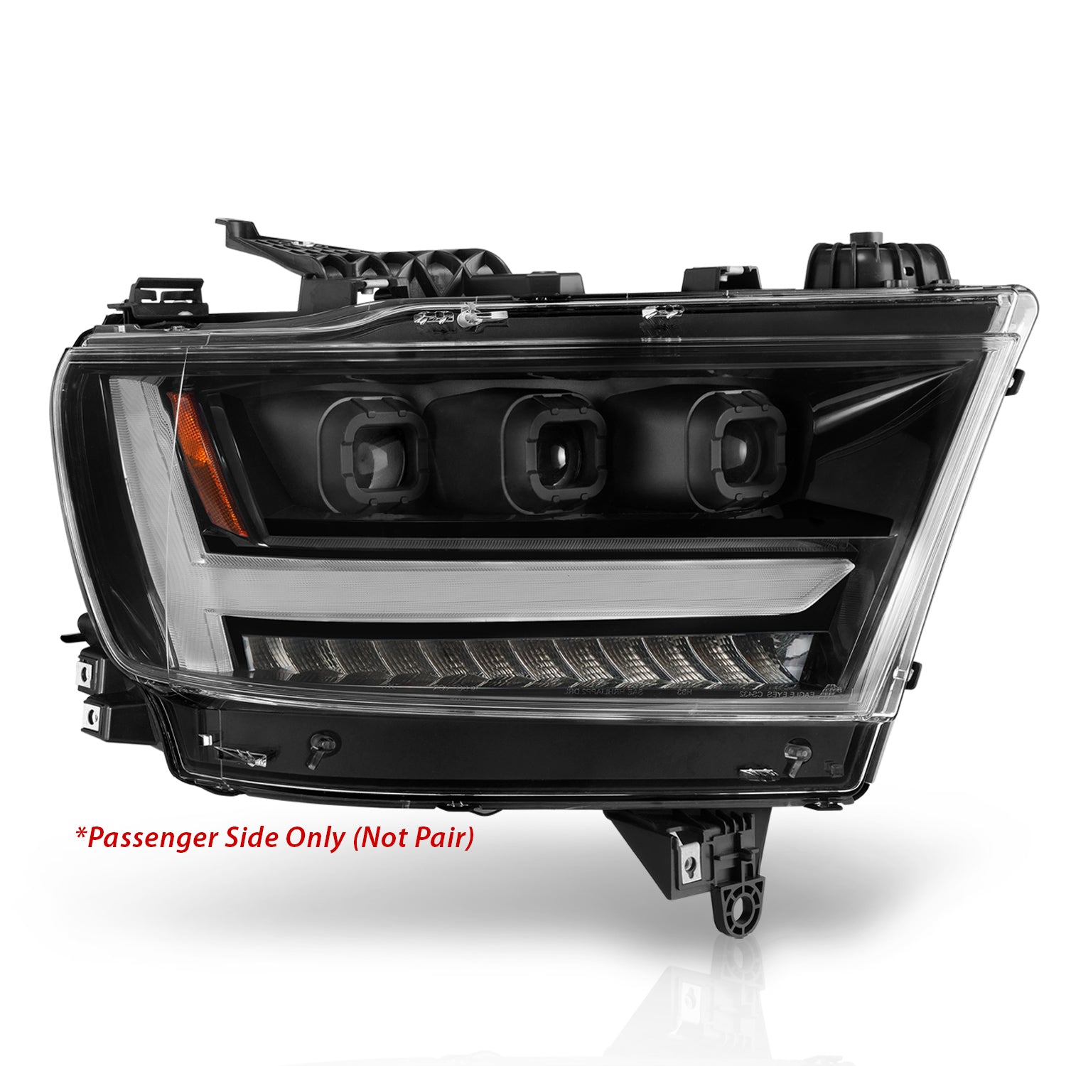 | Description_EXT | LED Projector Headlights w/ Light Bar Style; Sequential; Chrome Housing; Clear Lens; Passenger Side Only; 1PC |
