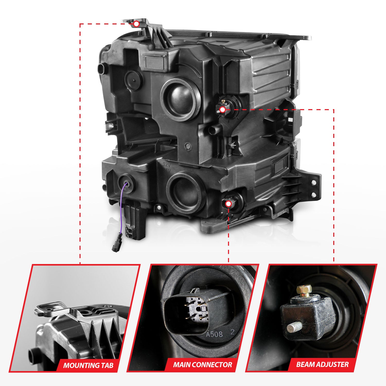 | 2022 | Chevrolet | Silverado 1500 LTD | Full Led Projector Headlights w/ Light Bar Switchback Sequential; Black Housing w/ Initiation Light (Halogen Type) (Driver Side Only) |