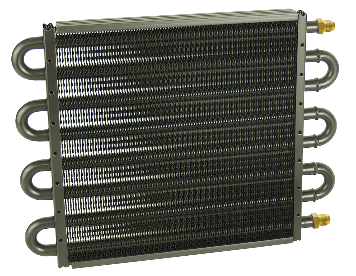 This Tube & Fin cooler features 1/2" copper tubing expanded into aluminum cooling fins and embossed turbulators. It is built with -6AN inlets and can be used as a transmission cooler, power steering or fuel cooler with equal efficiency. No mounting hardware included.