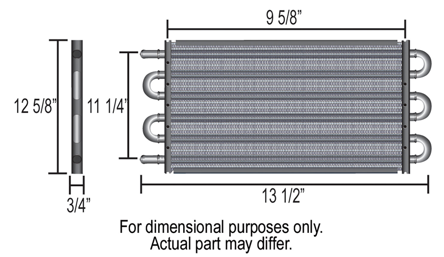This Tube & Fin cooler features 1/2" copper tubing expanded into aluminum cooling fins and embossed turbulators. It is built with -6AN inlets and can be used as a transmission cooler, power steering or fuel cooler with equal efficiency. No mounting hardware included.