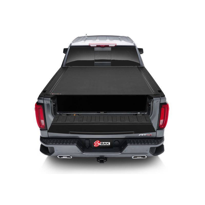 The new BAK Revolver X4s is the third generation of America's #1 selling premium hard rolling cover, now with exciting new features. The Revolver X4s is a bed cover engineered for real-world durability. With NEW matte black heavy-duty aluminum slats wrapped in industrial-grade vinyl and a matte black finish, top-to-bottom, the X4s delivers a modern, stylish appearance. With the cover closed, the patented rotational locking system secures the X4s for the entire length of the bed, on both sides, providing unrivaled strength and security. When open, the X4s cover rolls forward smoothly, storing securely with a durable strap and buckle system. This design gives you full access to your truck bed and does not interfere with your rear view mirror sightlines or block the third brake light. With revised premium black aluminum slats, newly designed side seals, and finished rear corner caps, the Revolver X4s bed cover achieves a new level of refinement for your truck. Best of all, it's backed by an impressive 5-year warranty. Expect More.