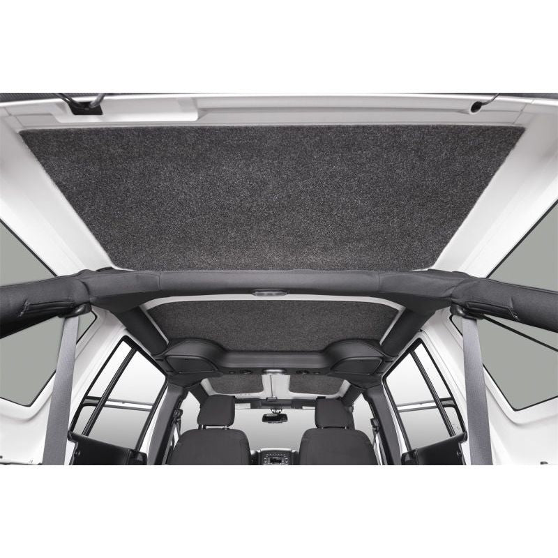 This 100% waterproof, fully custom die cut headliner kit installs quickly without the need to remove your hard top. The individual pieces can be quickly installed by removing the specially designed tape and pressing firmly into place. The BedRug material resists all harsh chemicals, and will not stain, stink, mold or mildew. The 1/2-inch polypropylene foam will help insulates your interior from road noise and heat.
