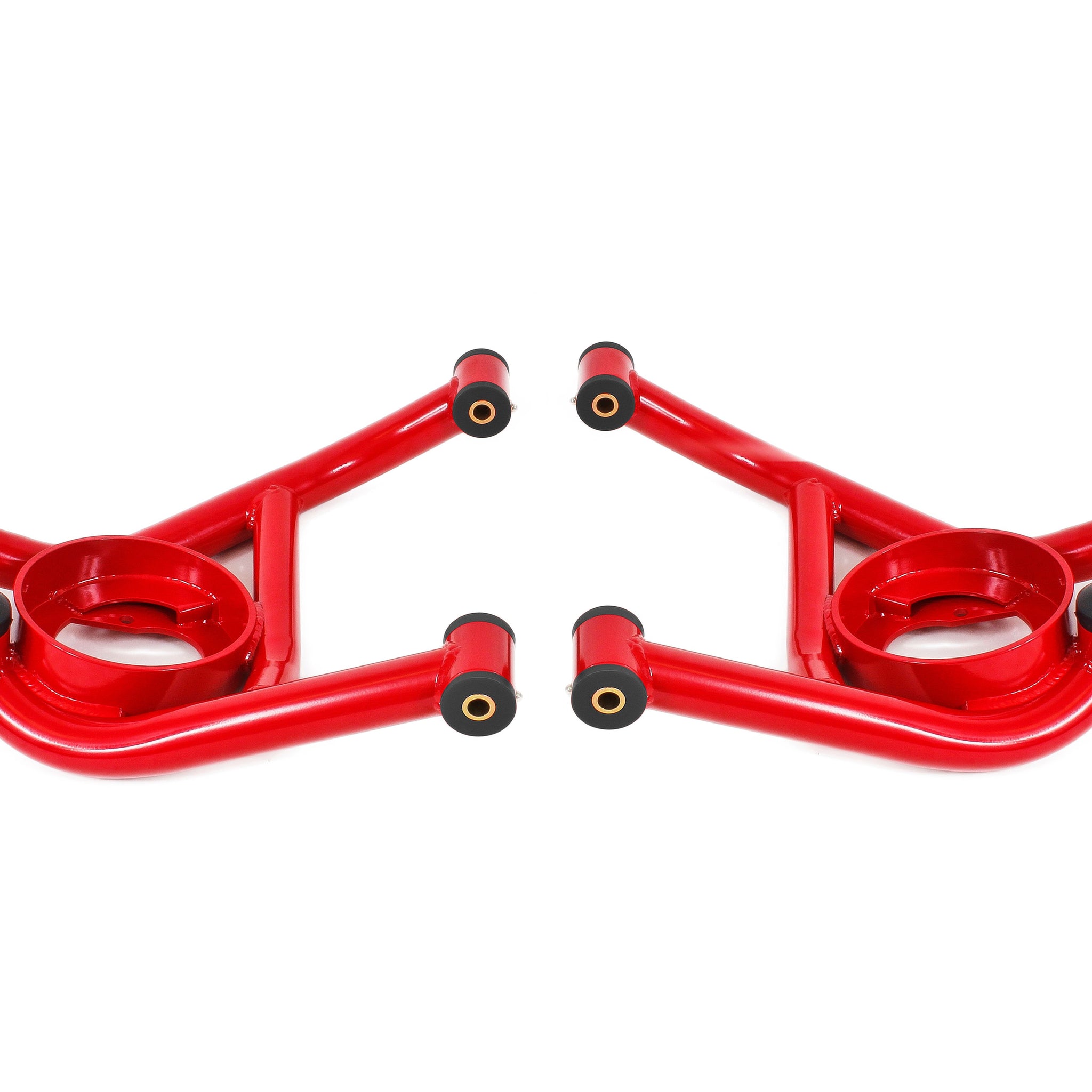 A-arms are one of the most important, yet overlooked suspension components. They are the direct link between the front wheels and the chassis. Any deflection causes a change in alignment, which results in poor performance and driving feel. Fabricated from heavy-duty 1.500-inch, 0.095-inch wall and 1.525-inch, 0.095-inch wall DOM tubing with laser-cut, CNC-formed plate steel braces for extra strength, deflection is eliminated with A-arms from BMR Suspension. BMR’s AAL321 Lower A-arms are fitted with heavy-duty ball joints and greaseable, Delrin bushings add a solid, more responsive feel over the stock rubber bushings. BMR’s bushings are internally fluted, which allows grease to evenly coat the inner sleeve. These flutes also direct grease to the outer edge of the bushing, keeping the thrust surface lubricated. This efficient lubrication ensures reliable operation over the life of the bushings.