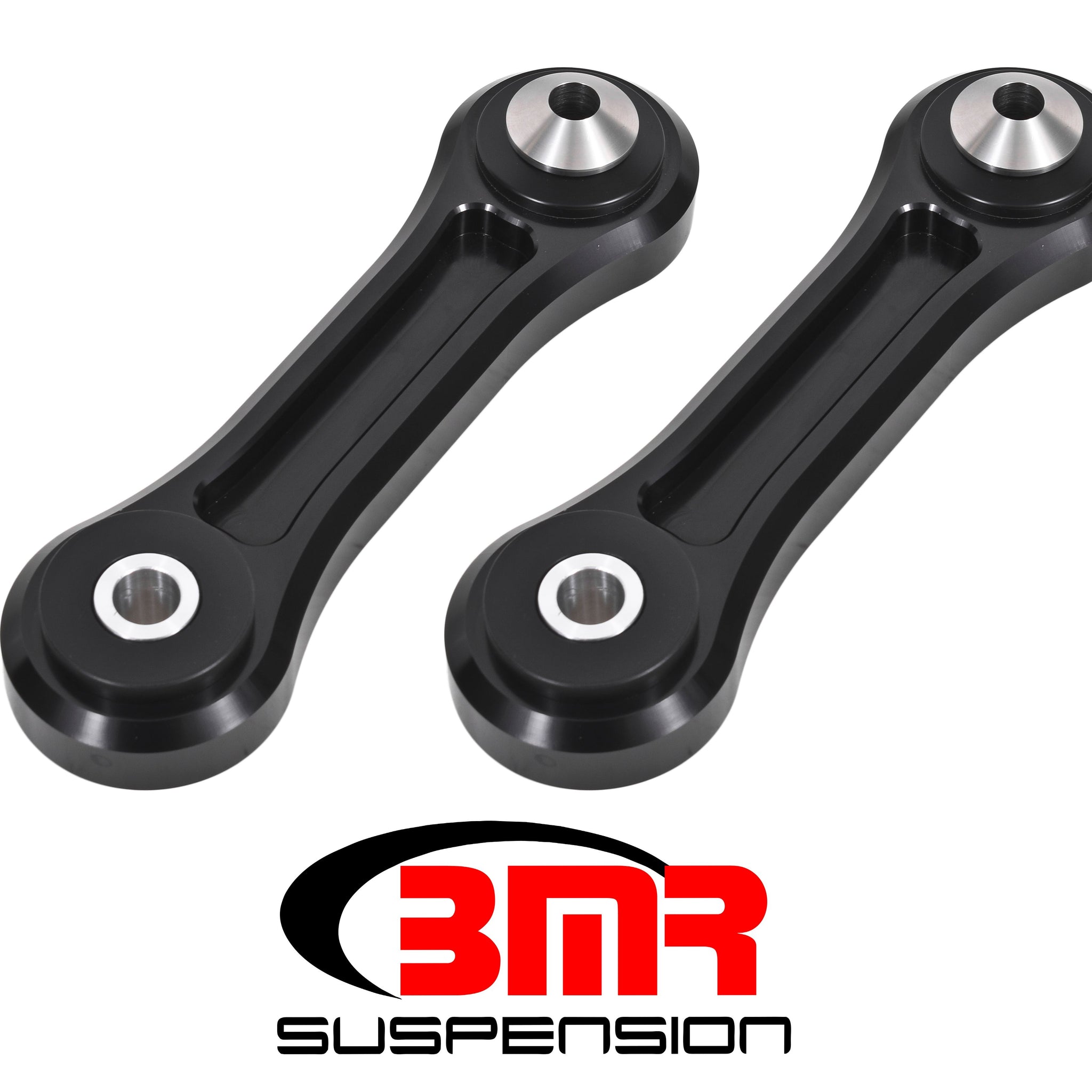 Launching harder, reducing wheel hop, and adding cornering consistency to your S550 Mustang is easy with billet aluminum vertical links from BMR Suspension. Stock stamped steel vertical links with soft rubber bushings deflect under load and absorb power instead of transferring it to the tires. BMR?s Delrin, billet aluminum vertical links (TCA047) are CNC-machined from 6061-T6 billet aluminum. This design gives you a strong control arm that greatly improves performance with zero deflection.