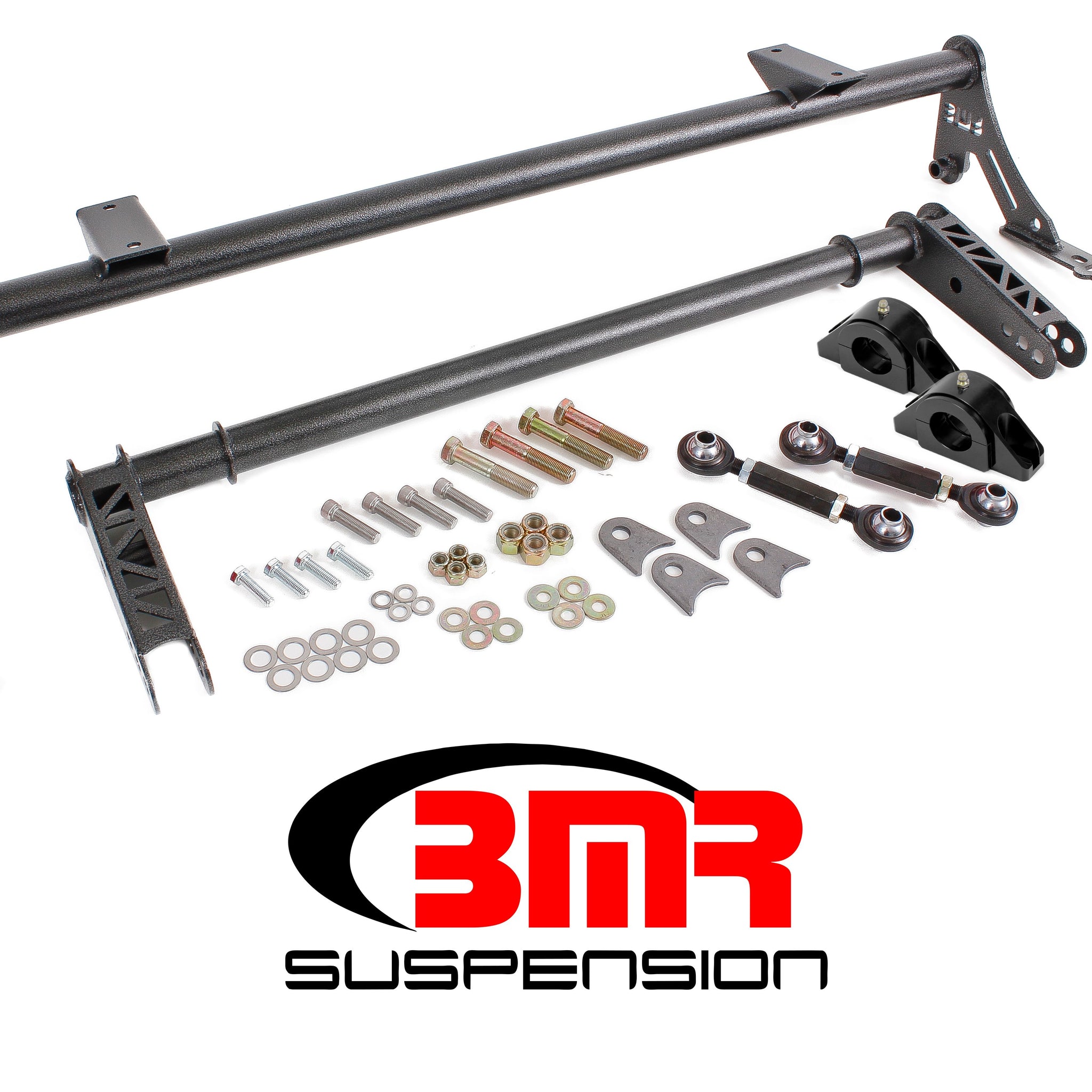 Hard launches from high horsepower cars at the drag strip require more than just a normal street-style sway bar. BMR Suspension?s Xtreme Anti Roll Bar for 2005-2014 Mustang or 2007-2014 Shelby GT500 allows you to launch harder without excessive body roll limiting traction. Manufactured from heavy-wall 1.375-inch DOM tubing, BMR?s Xtreme Anti Roll Bar (XSB011) is designed to eliminate body roll and transfer as much power as possible to the rear wheels. The XSB011 attaches to your Mustang with solid bushings. These bushings are CNC-machined from solid Delrin, and eliminate all bushing deflection. The fabricated laser cut, steel sway bar arms are reinforced to add strength and minimize deflection.