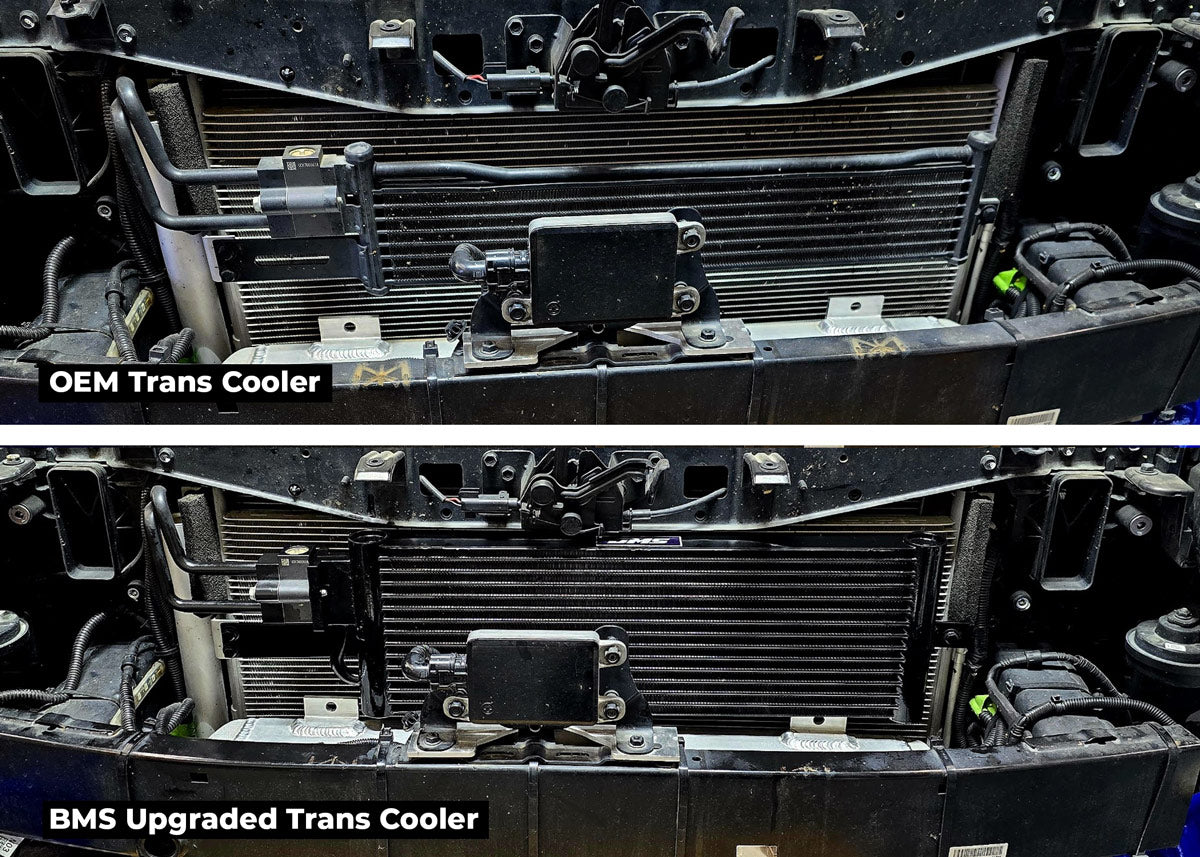 Transmission cooler dimensions: Stock vs. BMS
