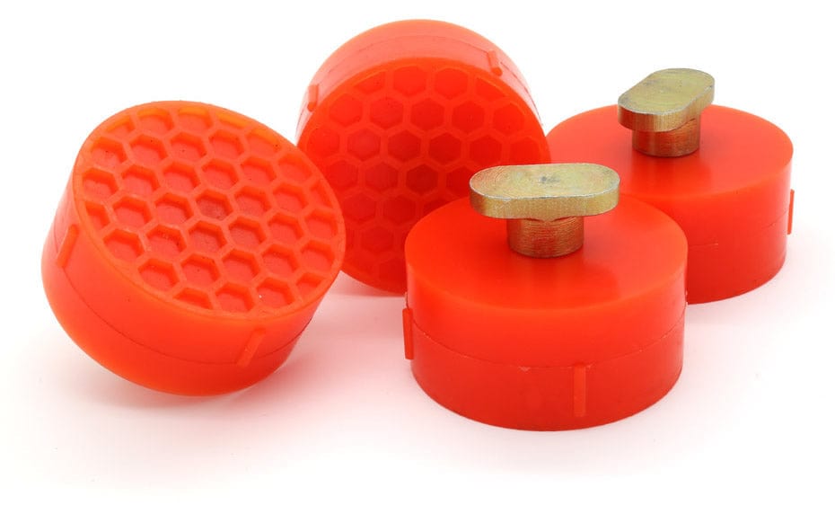 Safely lift your Corvette C5, C6, C7, C8 at the factory jack points like professionals do using these convenient BMS jack pad adapters. The hard urethane honeycomb design prevents scratching of your frame and ads clearance while positively using most floor jacks or lifts. Includes a CNC machined locking tab designed specifically for the factory jack receptacle. Sold as single units.