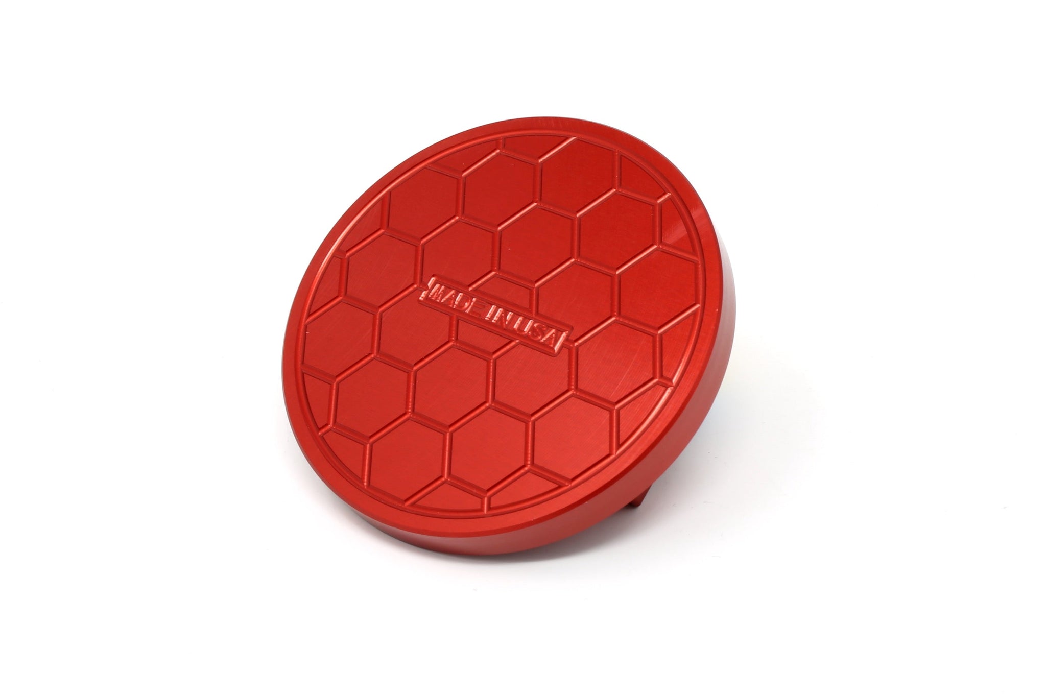Made in the USA from a solid block of billet aluminum (metal) with the Burger Motorsports logo engraved on top and a honeycomb grip pattern on the bottom. Will work on most floor jacks by creating a flat jack point. It does not touch or harm any painted surface of your car. Not for use on jack stands or bottle jacks.