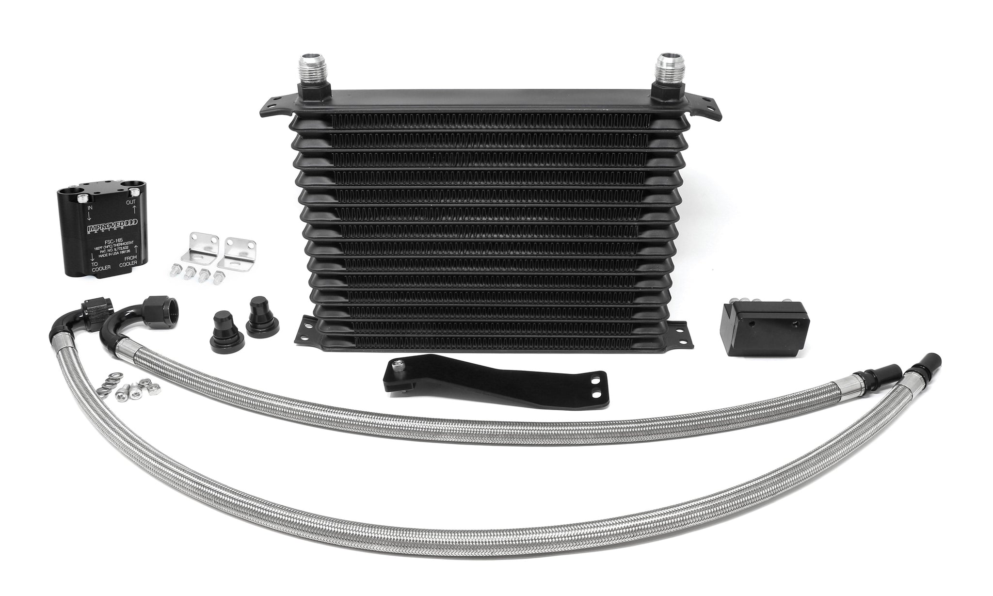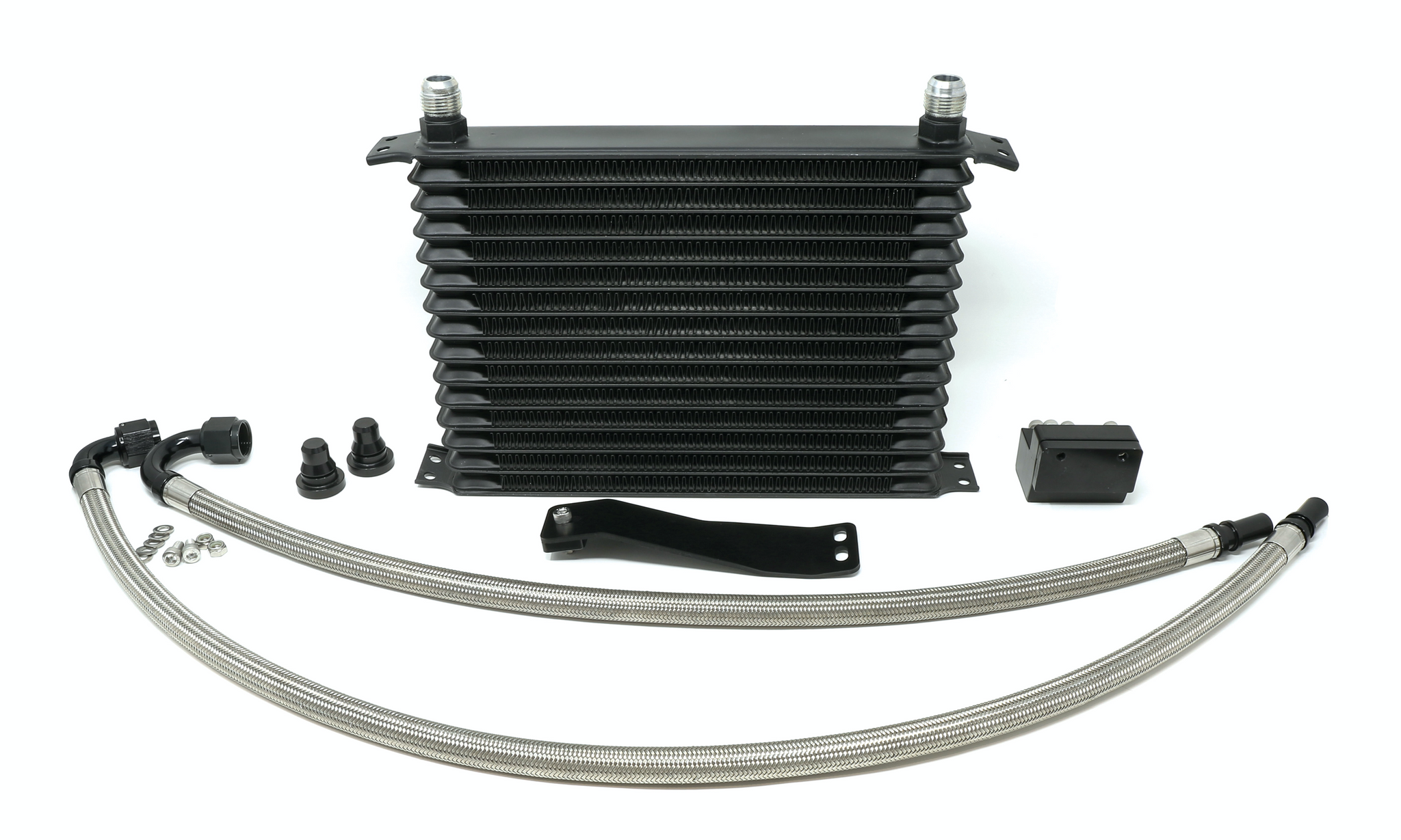 Everyone knows that heat is the enemy of your automatic transmission. And everyone knows that higher power levels generate more transmission fluid heat. Now you can extend the life of your automatic transmission by installing the new Burger Motorsports High Capacity Trans Cooler kit. This unique plug and play kit replaces your factory coolant to trans fluid heat exchanger with a high-capacity fender-mounted air to trans fluid radiator. Includes all mounting hardware, lines, and coolant caps required for installation. Installs inside the driverside fender providing ample airflow over the large cooling core via existing openings. The result is dramatically reduced transmission temperature and extended transmission life. This kit is strongly suggested for any BMW E chassis automatic running larger than factory turbos.