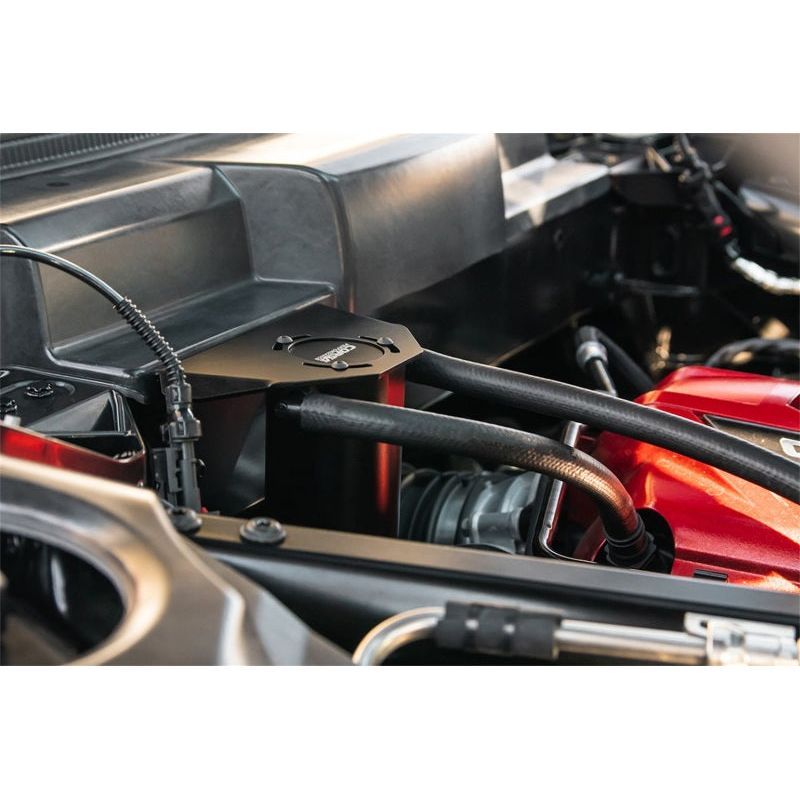CORSA Performance's oil catch cans are the latest in a line of performance parts designed to maximize vehicle performance and longevity. Made from 6061 aluminum and featuring a multi-stage oil separation system, CORSA Performance oil catch cans work to eliminate blow-by of gas, water, oil vapors and particulates from the airpath. By reducing the impacts of blow-by, oil catch cans prevent damage to sensitive intake components and helps reduce carbon build-up on valves that over time reduce engine performance. Each vehicle specific oil catch can has been designed with OEM style quick disconnect fittings, premium automotive-grade hoses and upgraded components to ensure your vehicle runs at peak performance. Through careful design CORSA engineers have mounted each oil catch can in an easily accessible yet safe location allowing for ease of serviceability.