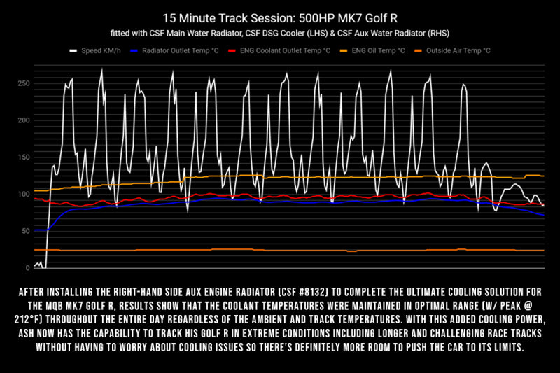 CSF has over 5 decades of experience manufacturing radiators. So when it comes to keeping your engine cool and your A3/S3 running at its best, a CSF High-Performance All-Aluminum Radiator is the obvious choice. Designed to perform on the street or at the track, a performance radiator is a must-have for both high horsepower builds as well as race vehicles which need added cooling performance in motorsports environments. This radiator features a 2-Row core with CSF's exclusive B-Tube Technology: Unlike a regular oval shape "O" type radiator tube, CSF uses a specially engineered tube in the shape of a "B". These "B-tubes" are carefully formed and then brazed over the seam to seal. CSF is able to use thinner and lighter aluminum material (with better cooling efficiency) because this design is actually stronger than normal "O" shape tubes that are welded. The design (inlet in the middle of the tube that is seam brazed) increases the heat transfer surface area of the tubes by approximately 15% over regular tubes - producing the efficiency of two smaller tubes vs. one large tube within the same space criteria. With "B-tubes" you are able to get "dual liquid laminar flow". CSF also uses ultra efficient multi louvered fins that are carefully and precisely aligned to maximize airflow through each radiator core. Fin specifications are carefully measured and calculated for each application, and tested for maximum heat rejection efficiency in our wind-tunnel lab.