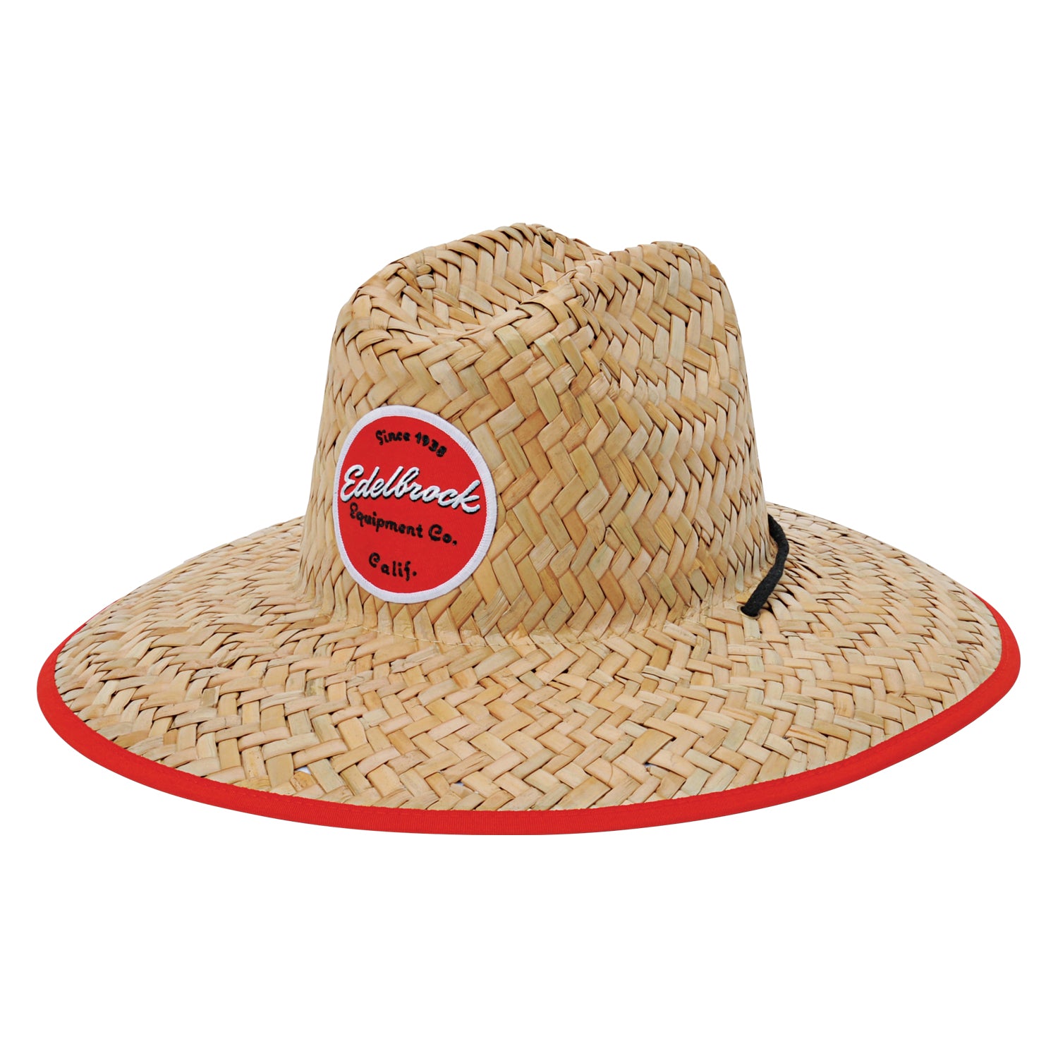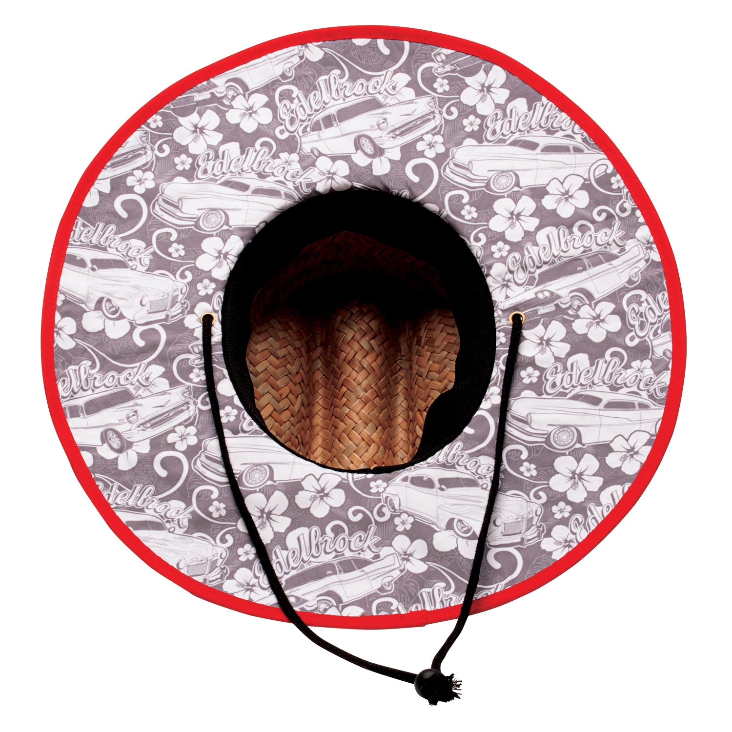 The Edelbrock SHADED SINCE 38' Baja Hat is adorned with the Since 1938 patch sewn on the front. This baja style hat has red canvas trim along the brim with the custom Edelbrock Aloha pattern on the underside. Perfect for those sunny days at the track, street or just chillin' at the car show.