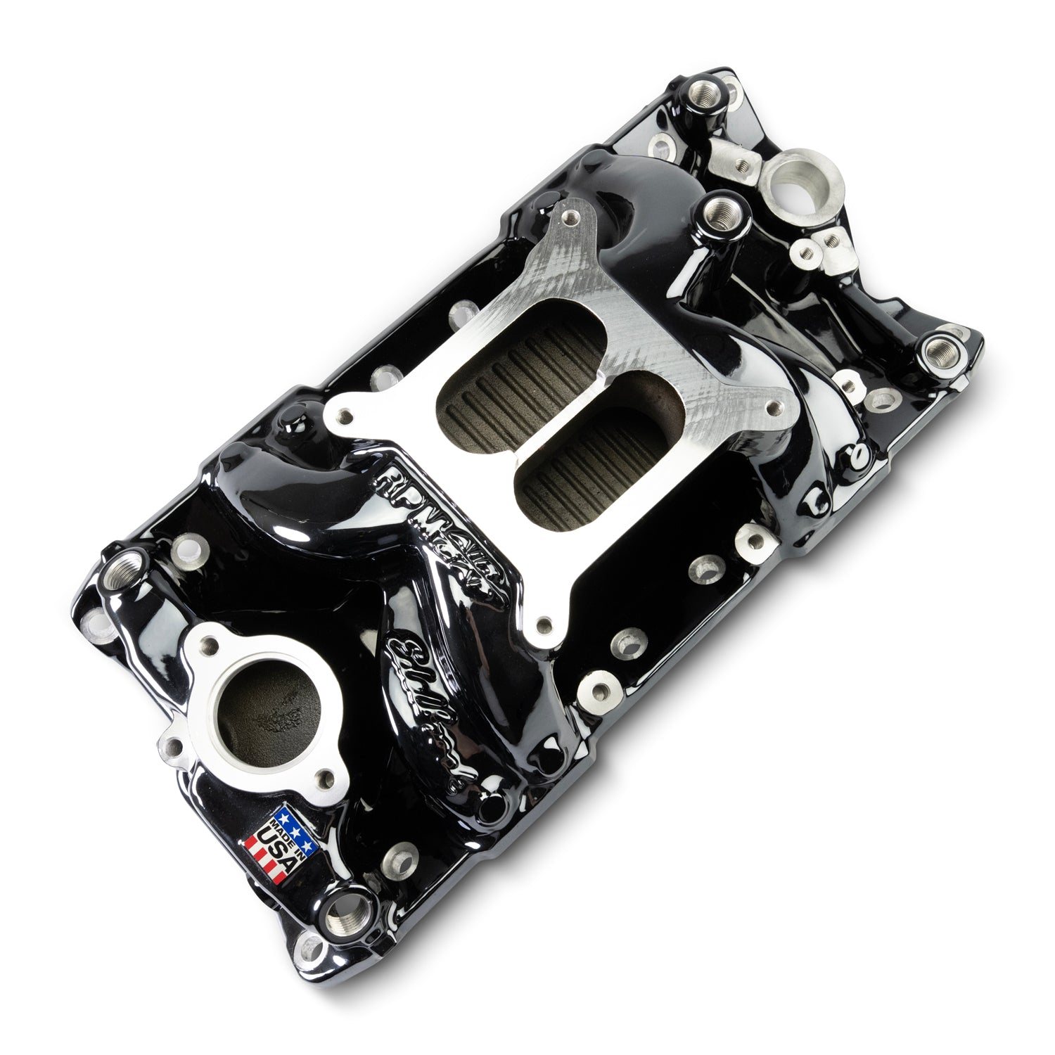 | Description_MKT | Edelbrock part #7501-BP RPM Air-Gap intake manifold is designed for 1955-86 262-400 c.i.d. Chevrolet V8 applications. The award-winning RPM Air-Gap intake manifold incorporates the same race-winning technology that's used on our Victor Series competition intakes. The air-gap design features an open air space that separates the runners from the hot engine oil resulting in a cooler, denser charge for more power. This PN 7501-BP version comes with a beautiful reflective Black Plasma finish that is durable and easy to maintain. The Plasma finishes are applied by a fully automated 7 stage prewash and 4 stage finish. A durable clear powder coat finishes the process. |