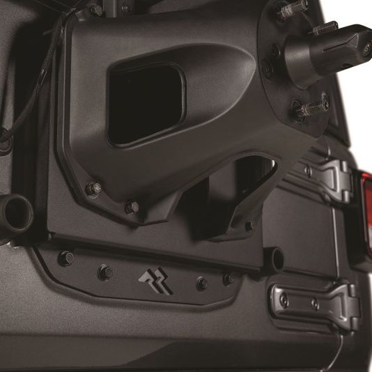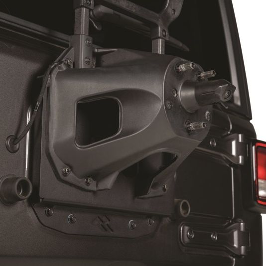Fitting 35- in. tires on the Wrangler JL is one of the easiest and most appealing upgrades around. We felt that hauling a bigger spare tire shouldn't be a headache either. Rugged Ridge's Spare Tire Relocation Bracket is designed to effectively mount a 35 x 12.50 tire upward and outward, giving you adequate clearance from the rear bumper while eliminating aggravating interference with the factory proximity sensors. Purpose-built from muscular 4mm thick steel and reinforced for added strength, we finished it off with a fine textured powder coat so it's built to outperform the factory equipment and look great doing it. Installation is quick and concise with the included instructions. Works with factory back-up camera and high-mount brake light equipment.