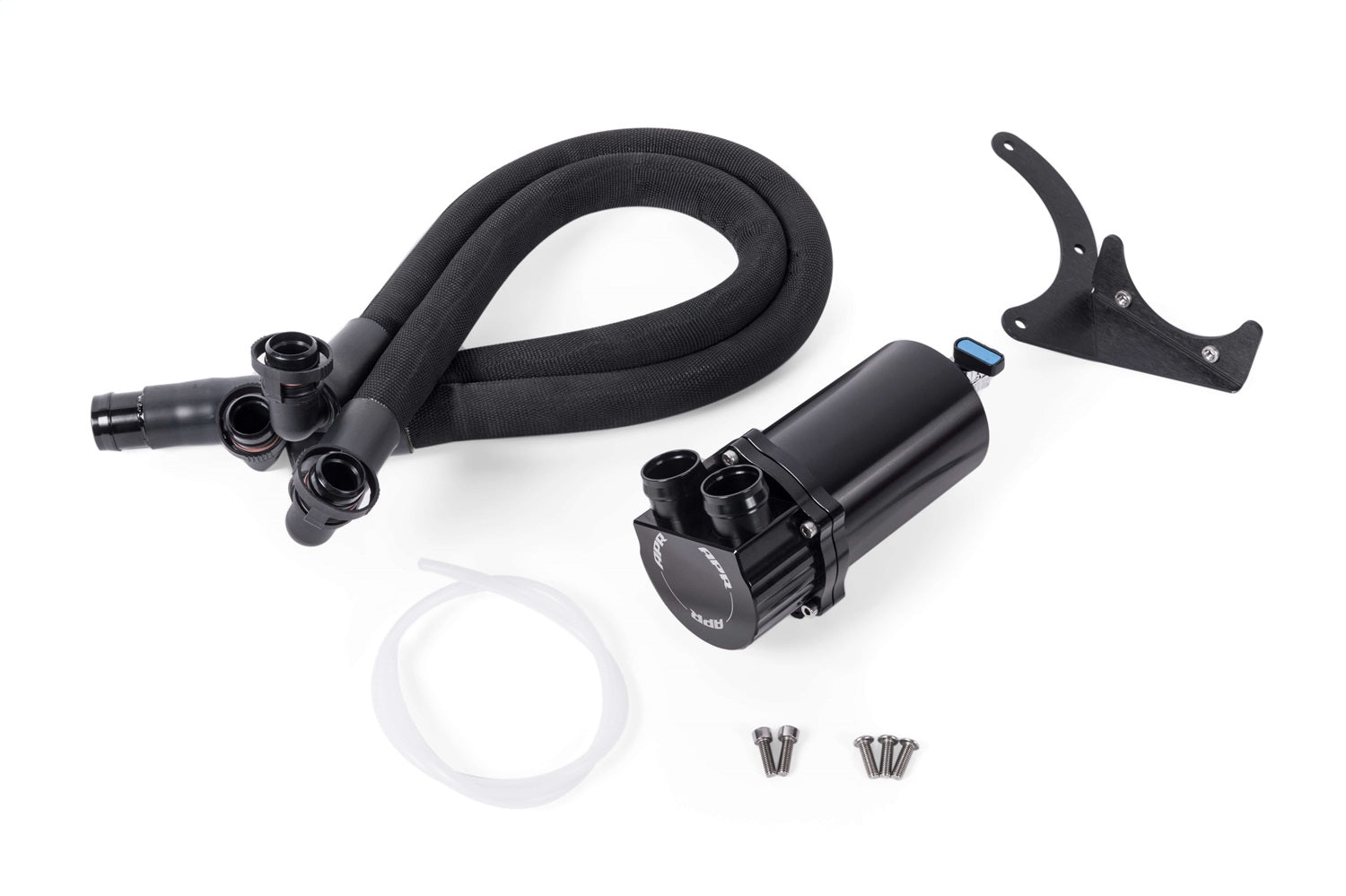 The APR Oil Catch Can System traps excessive crankcase oil vapors and gunk from entering the engine. The system reduces carbon buildup on intake valves, and octane lowering oil vapors and oil pooling within the intake tract. It's a simple modification to install, drains in seconds with the flick of a knob, and is recommended at all stages of performance.