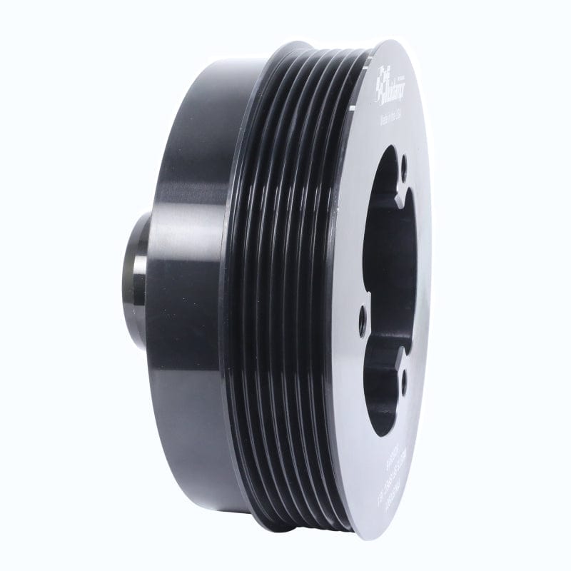 Protect your engine. Modifications can compromise your stock harmonic balancer. Install a Fluidampr performance damper early for best durability. Superior viscous damper design controls harmful torsional vibration across the entire rpm range. Reduce wear on engine components. Reduce risk of crankshaft failure. Improve timing. Unleash lost torque and horsepower. Precision CNC machined and balanced high-grade steel components. Corrosion resistant black zinc finish with engraved timing marks. No maintenance required. Trusted by leading engine builders worldwide. SFI 18.1 certified. Made in USA.
