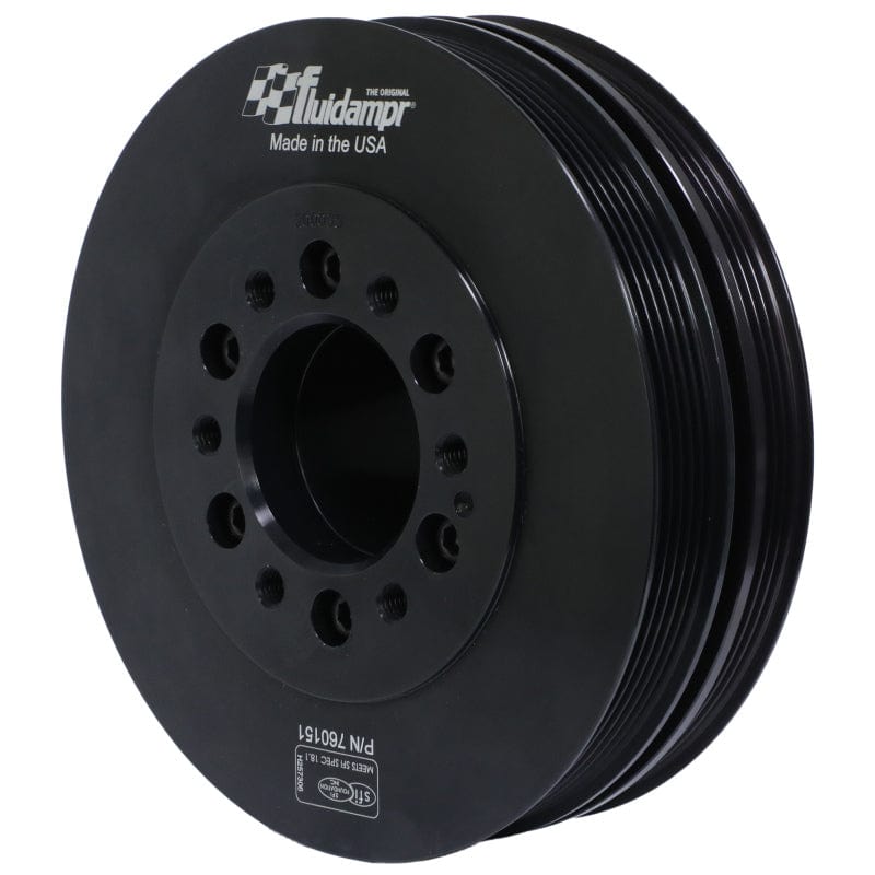 Protect your engine. Modifications can compromise your stock harmonic balancer. Install a Fluidampr performance damper early for best durability. Superior viscous damper design controls harmful torsional vibration across the entire rpm range. Reduce wear on engine components. Reduce risk of crankshaft failure. Improve timing. Unleash lost torque and horsepower. Precision CNC machined and balanced high-grade steel components. Corrosion resistant black zinc finish with engraved markings. No maintenance required. Trusted by leading engine builders worldwide. SFI 18.1 certified. Made in USA.