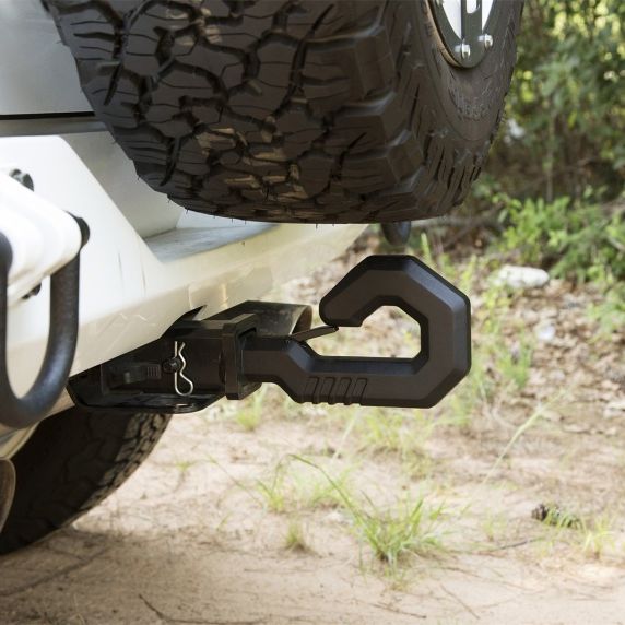 The Rugged Ridge Elite Giga Hook is not just another recovery hook. It?s massive, oversized ?scorpion-tail? styling makes it as attention grabbing as it is functional. Each Elite Giga Hook is tooled from high-strength AISI 4340 carbon steel, packing enough brute strength to manage even the toughest off-road recoveries. A spring-loaded latch closure insures that tow straps stay in place on the Elite Giga Hook, even when the load is released. Available in wide variety of attractive powder coat finishes: Black, Red, Pink, Yellow, Green or a raw paintable finish for those who dare to explore the possibilities. The Elite Giga Hook works with any 2-inch receiver hitch and is guaranteed to take your recovery gear to the next level.