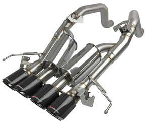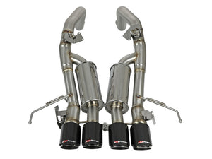 In testing, the axle-back exhaust system resulted in gains up to +7 horsepower and +10 lbs. x ft. of torque verified by our in-house dyno. Dual free-flowing mufflers are used to absorb high pitch tones producing a powerful sound and unleashing all available horsepower and torque. This axle-back exhaust system incorporates factory style NPP dual mode & AFM (active fuel management) exhaust valves which use the factory exhaust valve motors (not included). The valves helps regulate, direct and control the flow of exhaust gases by opening, closing, or partially obstructing passageways depending on throttle position for maximum performance.This MACH Force-Xp axle-back exhaust system uses factory mounting locations providing stability and a hassle-free installation. Finishing off this system are quad light weight, 4"diameter carbon fiber tips. The tips feature an aFe POWER logo which give an aggressive yet elegant sporty look. High quality band clamps are used for a complete 360 degree sealing surface. The performance axle-back exhaust system is constructed of 3" mandrel-bent, brushed 304 stainless steel tubing for maximum performance, corrosion resistance and strength eliminating cracking. Failures of original equipment AFM and NPP actuators are not covered by aFe POWER's warranty