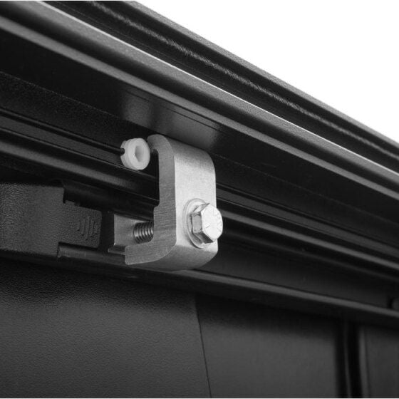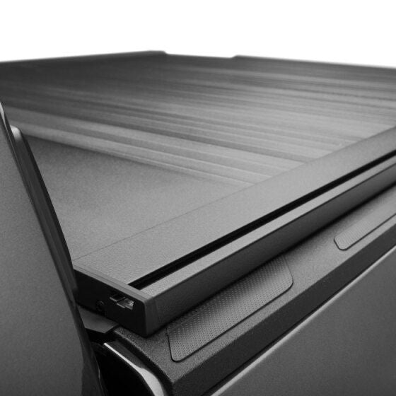 A new evolution in truck bed covers, the Retrax EQ is made of industrial-strength aluminum that offers unmatched strength and features a quiet cable drive retracting system.The Retrax EQ incorporates built-in Bluetooth technology, allowing you to control the bed cover's operation via the Retrax Phone App (iOS/Android), with the convenience of the vehicle's OE key fob or with an optional cab-mounted touchpad. Heavy-duty aluminum rolling cover assembly built strong enough to support 500 lbs. with the maximum truck bed space. Experience optimal functionality with an advanced LED lighting system integrated within the driver's side rail channel (included), automatically illuminating the truck bed when opening or closing the Retrax EQ. This retracting system features a Dual Helical Cable Drive System and glide tracks embedded in the rail channel, resulting in an ultra-quiet and smooth operation. The Retrax EQ electric retractable cover offers an anti-pinch design and manual disconnect mechanism providing ultimate cargo protection, safety, and security. Made in the USA with globally sourced materials and supported by our 5-year warranty and USA-based support team. Regarding electric retractable bed covers, it is by far the most versatile and accessible truck bed cover ever made.