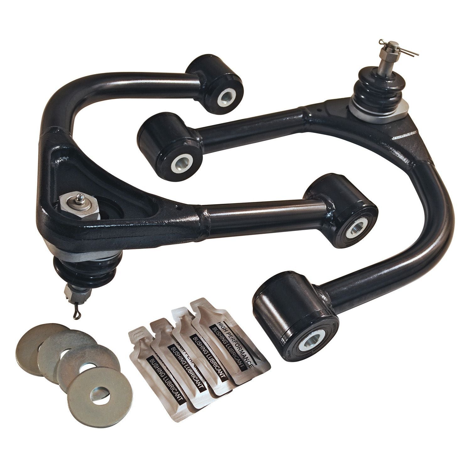 Improve droop travel, drivability and tire wear as well as adjusting tire position in your wheel well with SPC's adjustable front upper control arms on many Toyota trucks and SUVs. Featuring our long-life maintainable ball joint and SpecRide bushings, this arm is designed to correct alignment angles while maintaining factory ride quality. SPC's integrated tubular and cast steel design provides the strength and durability needed for the most demanding environments. These remove and replace arms are available in pairs for lifted and off-road applications.
