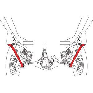 Description_MKT This pair of rear lower control arms are direct replacements for weak or bent factory units. Made of 3/16" wall DOM tube, they are more than 2x stronger than the OEM arms! They are equipped with a rubber bushing in one end for isolation of axle noise and xAxis joints in the opposite end for superior flexibility off road. Whether you are replacing damaged OE parts or upgrading for offroad use, these are the arms for you. Need articulation or alignment changes in the front? Check out the 25455 front adjustable upper control arms!