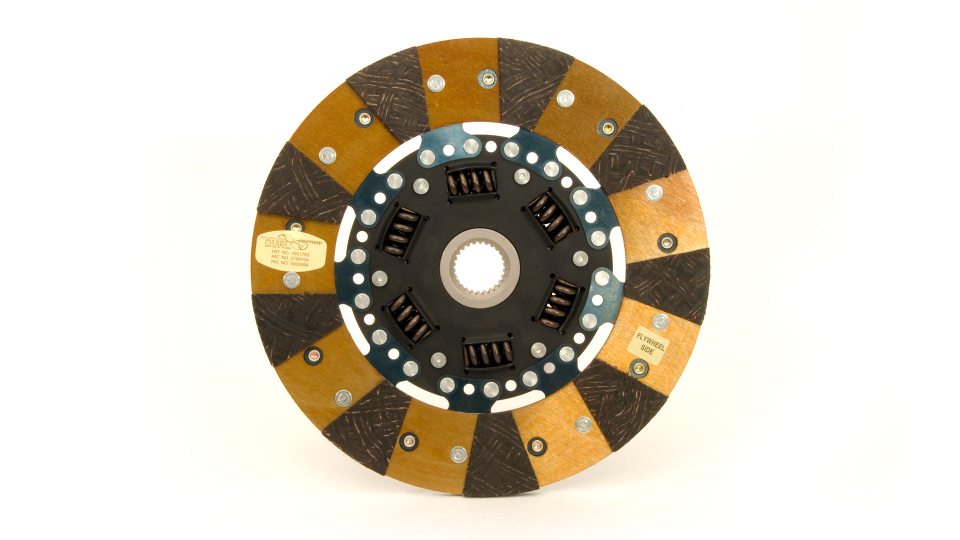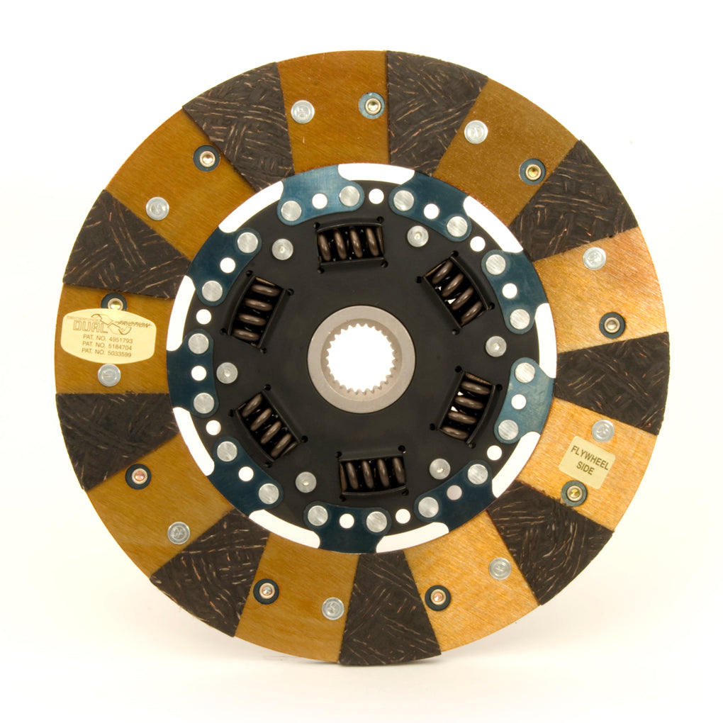 The Centerforce(R) Dual Friction(R) Disc Series uses a single disc with patented dual friction technology by distributing pressure plate clamp force evenly over a 360-degree friction-facing on one side of the clutch disc, while the opposing side uses a segmented friction-facing to concentrate clamping pressure and increase clutch holding-capacity. These discs are made for Centerforce Dual Friction pressure plates.