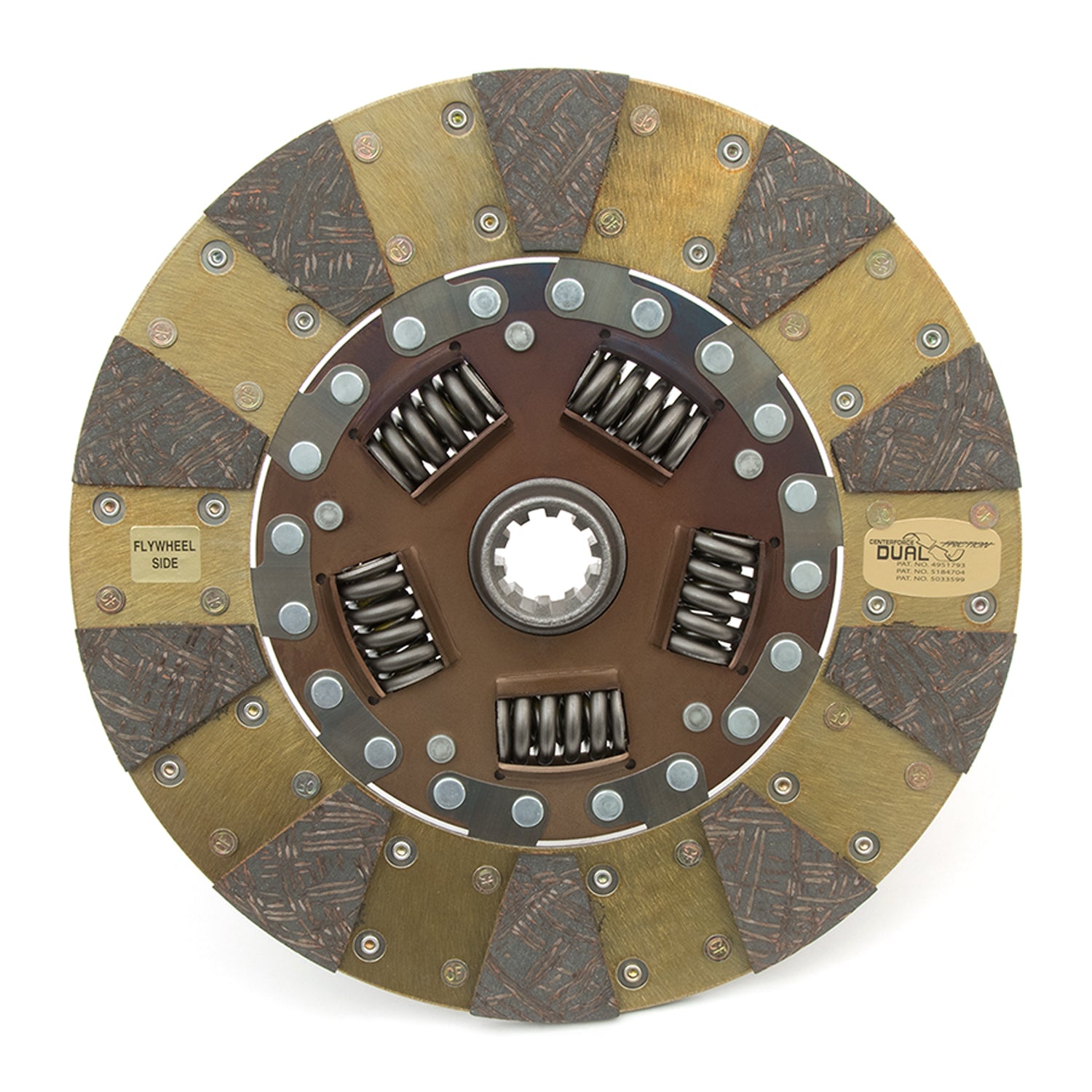 The Centerforce(R) Dual Friction(R) Disc Series uses a single disc with patented dual friction technology by distributing pressure plate clamp force evenly over a 360-degree friction-facing on one side of the clutch disc, while the opposing side uses a segmented friction-facing to concentrate clamping pressure and increase clutch holding-capacity. These discs are made for Centerforce Dual Friction pressure plates.