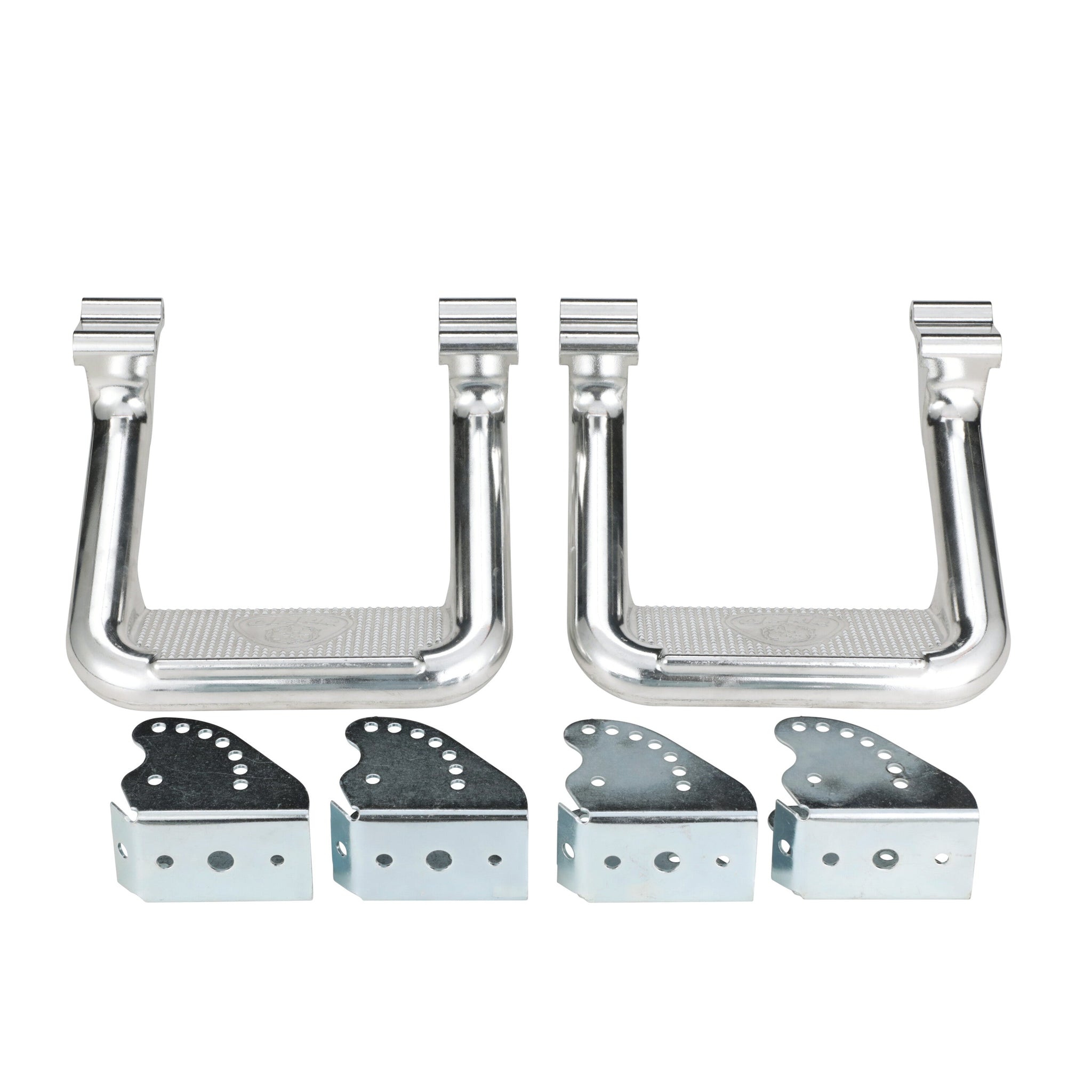 Uniquely designed diamond tread pattern provides a safe, non-slip surface on the flat step area. Our exclusive multi-mount system is designed for precision fit and easier installation. Constructed of an extremely strong die-cast aluminum alloy for the ultimate inequality and durability.
