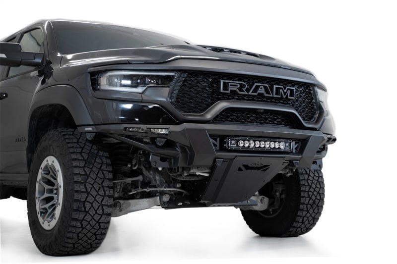 Revamp your ride with the Phantom Series TRX Front Bumper. With a sleek, low profile and prerunner inspired design, this bumper will give your ride an instantly upgraded look. Constructed from plate steel for a more enhanced style, the knife's edge design mimics the look of trailing arms. It comes with a lightweight 3/16-inch aluminum skid plate which provides full protection without adding excess weight. The skid also boasts vented cutouts to ensure proper air flow to the intercooler.