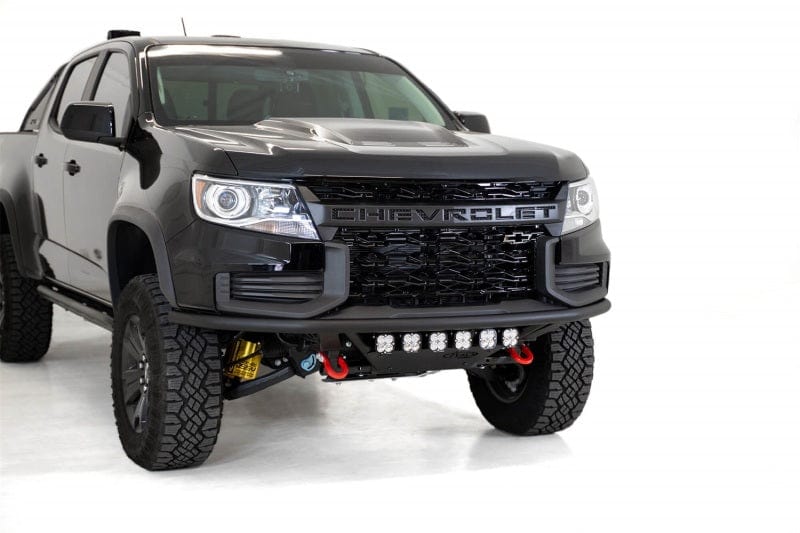 The fully formed and radiused main tube of the ADD PRO Bolt-on sits flush to the front of your 2021 ZR2 giving a clean, low-profile look. OEM amenities, such as the tow hooks and skid plate are retained. A universal light mount system in the center of the bumper allows the use of a 20 in. radius bar or up to 6 cube lights.120 in. Wall steel tubing provides the skeleton of this bumper while the skid plate is CNC cut from 1/8 in. aluminum. For OEM bumper removal the front fascia will need to be cut, but the bumper is otherwise bolt-on. As always, this bumper is made in America.