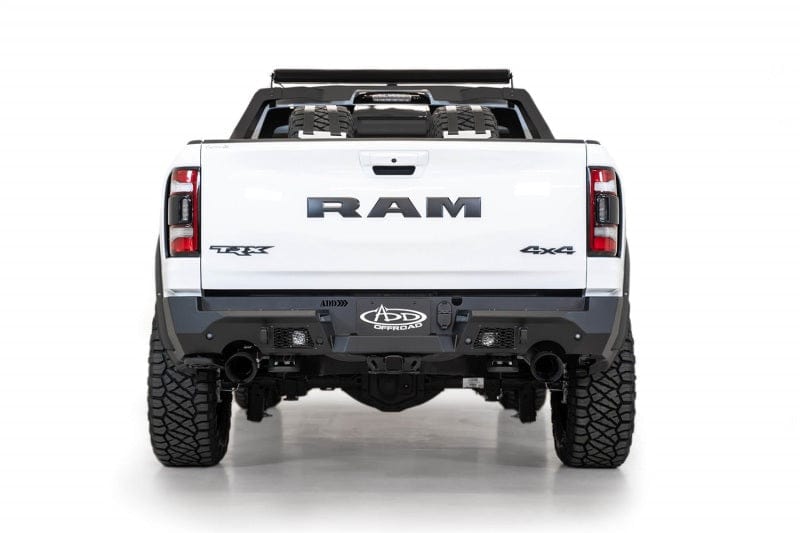 The Stealth Fighter Rear Bumper has a modern plate steel design that provides an aggressive look without being bulky. Clean lines and angles compliment the factory bodylines to give it a low-profile feel. Two rear facing cube light mounts are featured behind the panels. Parking sensor cutouts and trailer plug accommodations ensure that every OEM feature is retained. Reinforced clevis mounts provide a mounting point for 3/4 in. D-Rings, and the OEM bed step and tow hooks also remain fully functional. Cutouts along the bottom of the bumper give room to keep the factory dual exhaust. As always, this product is fully bolt-on and made in America.