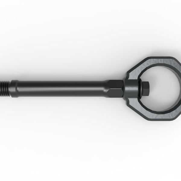 Add aggressive styling and useful functionality to your C8 Corvette with the aFe CONTROL Front tow hook. Its sleek design not only looks great but is strong enough to safely winch your car onto a tow truck or get towed trackside if the need arises. Our C8 specific CNC machined stem and loop is made of 4130 steel. The stem is black zinc coated for corrosion resistance. The loop is powder coated Gray (Blue, Red, and Black are available). This is not a universal tow hook. The stem was specifically designed for the C8 Corvette and the length was carefully determined to fit the rear bumper. A proper rear tow hook to match is also available. (p/n 450-401015-G). Both the stem and bolt threads are pre-coated with Vibra-tite threadlocker. This keeps your tow hook from loosening due to vibration. The special threadlocker is designed to remain flexible, removable, and reusable