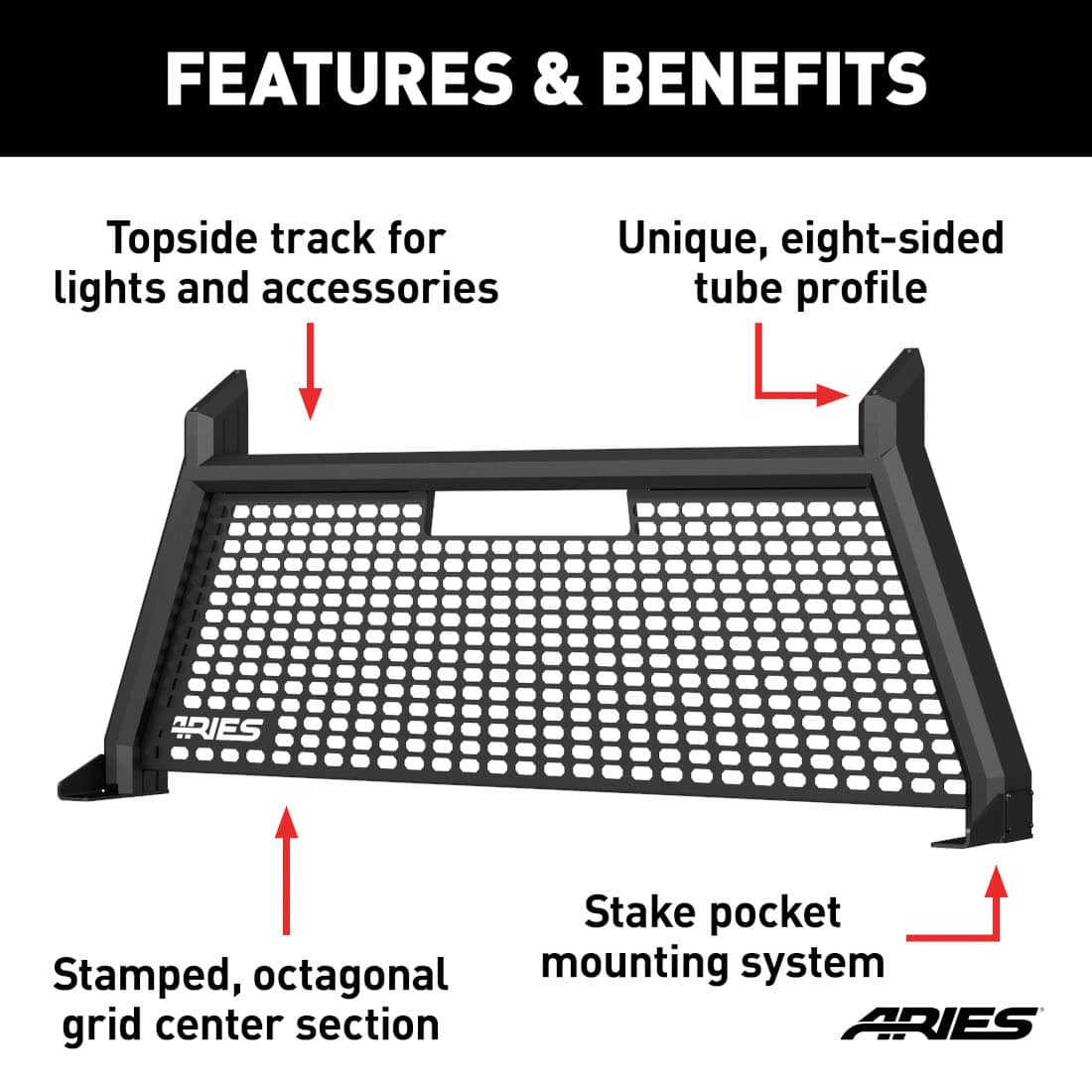ARIES BLACK ADVANTEDGE HEADACHE RACK ; 17-25 SUPER DUTY