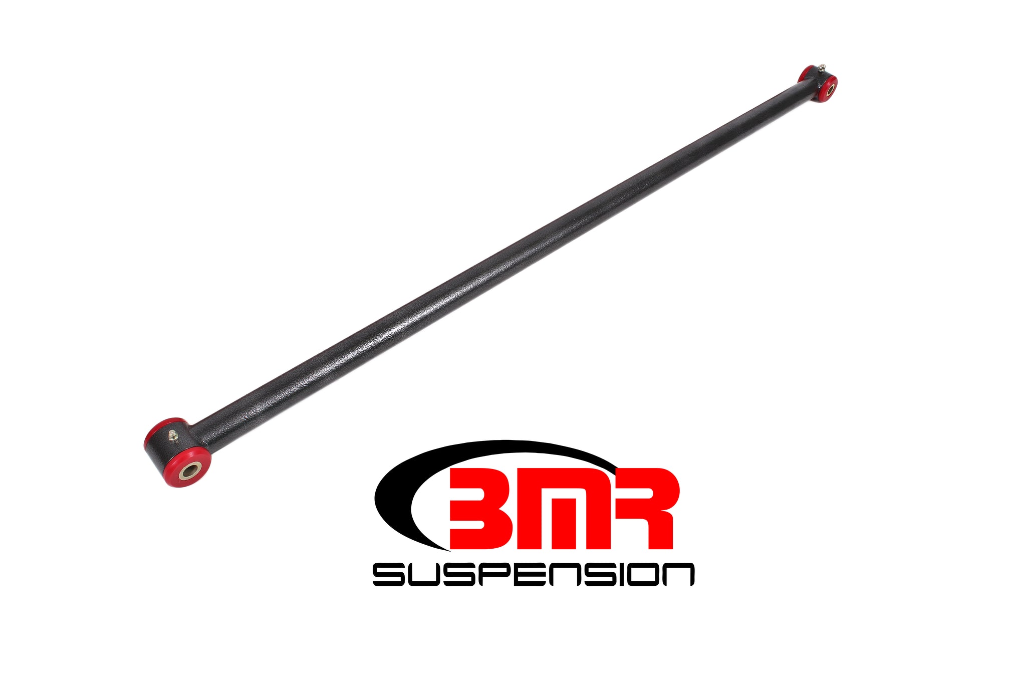 A Panhard rod is a suspension link that both locates the rear axle housing laterally and controls side-to-side movement. Factory S197 Mustang Panhard rods are made from weak U-shaped stamped steel with soft rubber bushings that allow excessive deflection under load. BMR Suspension's PHR005 Panhard rod is made 1.25-inch, 0.120-inch wall DOM tubing for unrivaled strength. The PHR005 features greasable, 95-durometer bushings, which add a solid, more responsive feel over the stock rubber bushings. BMR's bushings are internally fluted, which allows grease to evenly coat the inner sleeve, keeping grease in the bushing under high compression loads. These flutes also direct grease to the outer edge of the bushing, keeping the thrust surface lubricated. This efficient lubrication ensures quiet, reliable operation over the life of the bushings. BMR Suspension designed the PHR005 to work well for street performance, drag race, and road race applications. The heavy-duty construction eliminates the deflection seen in stamped-steel Panhard rods. Other Panhard rods on the market include rubber bushings that will deflect under heavy loads. The 95-durometer polyurethane bushings of the PHR005 reduce bushing deflection, giving you much-improved, repeatable handling characteristics on the street, starting line, or in aggressive corners. The non-adjustable design makes the PHR005 great for stock height Mustangs. This gives you all the strength you need for great handling without huge increases in NVH. When performance is a must, rely on BMR Suspension! BMR Suspension's PHR005 non-adjustable Panhard rod is available in black hammertone and red powdercoat for long-lasting good looks. Installation time is about 1 hour. Proudly made in the U.S.A.