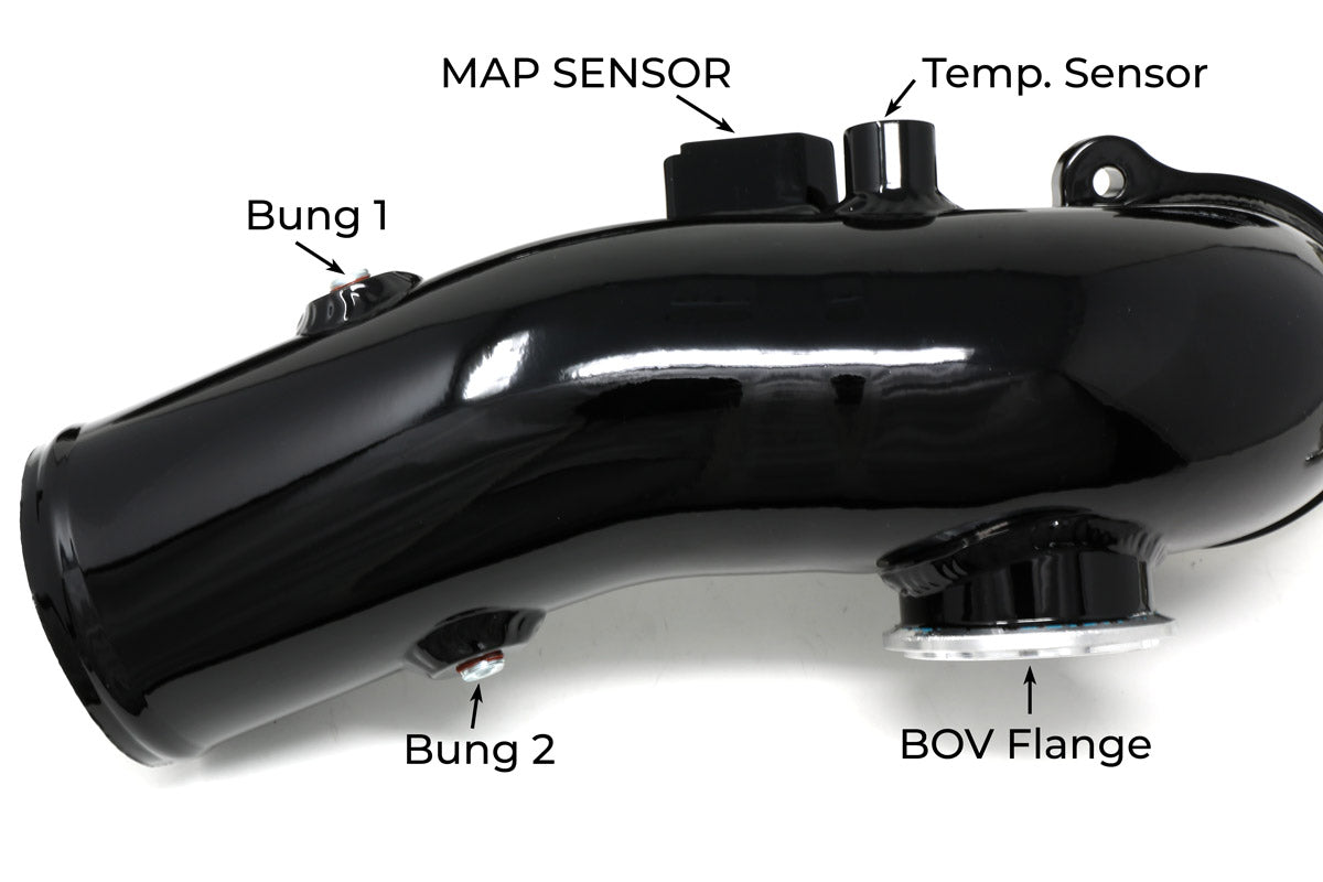 Upgrade your flimsy OEM Gen1 B58 BMW charge pipe to our heavy-duty aluminum replacement to prevent charge pipe failure. Designed and manufactured by Burger Motorsports in the USA. The BMS Elite is the highest quality B58 charge pipe upgrade on the market. This replacement charge pipe features all-aluminum construction, high-quality glossy black powder coat finish, CNC machined flanges, 2 optional 1/8" NPT methanol bungs, OEM style mounting hardware for a direct fit, and a lifetime warranty. Because we use the OEM mounting system, unlike other charge pipe solutions, this charge pipe installs in minutes, retains all emissions fittings, and is 100% reversible. Lifetime warranty. Made in the USA.