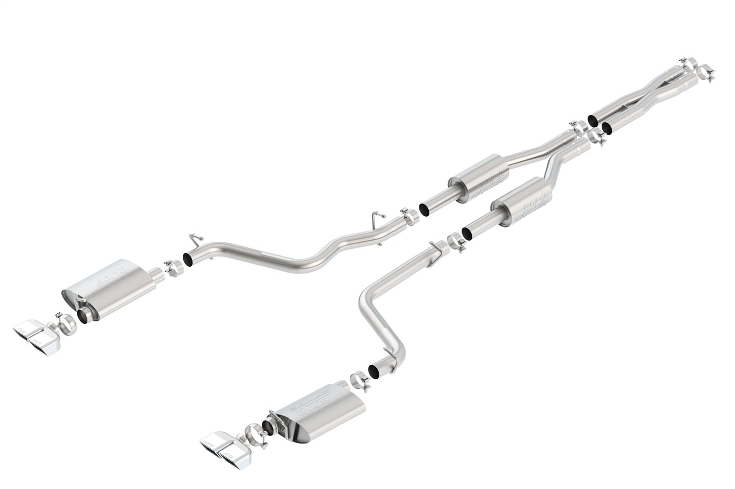 This system features our latest engineering techniques to give you robust sound without any "drone". System features a X-Pipe for improved performance and polished T-304 stainless steel tips for sharp appearance. Borla Cat-Back & Axle-Back exhaust systems feature patented straight-through and multi-core technology designed to unleash hidden horsepower. Increased exhaust velocity adds power, driving excitement, fuel economy, and the distinctive Borla Sound of Power respected by motoring enthusiasts everywhere. Each system is built from premium 300-series T-304 stainless steel, superior to T-400 series knockoffs (such as 409), to give you the absolute best in performance and durability. Ultra-smooth mandrel bends ensure maximum flow & power, and precision computer-controlled CNC manufacturing ensures an accurate fit. Best of all, Borla stands behind every system with a Million-Mile Warranty. Just what you'd expect from the world's most experienced (and most winning) exhaust brand.