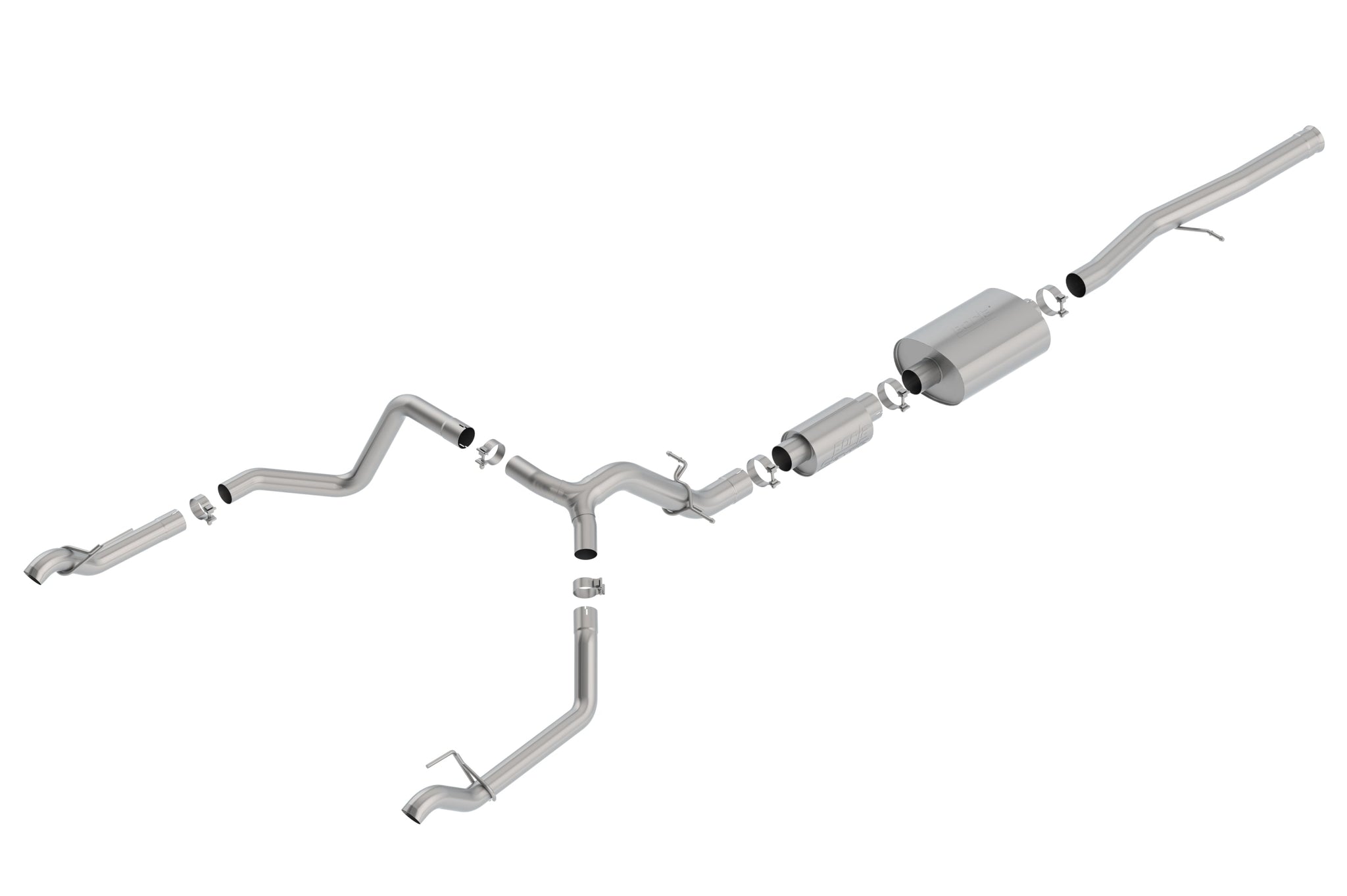 EXCEPT ZR2 & AT4X models. Factory Split Rear Exit vehicles ONLY. Tips NOT included, reuse factory tips. Add Adapter 60706 for Crew Cab with Standard Bed (6' 7") 157" Wheelbase vehicles. Replace the small muffler behind the primary muffler in the BORLA "S-Type" system with Polyphonic Harmonizer 60680 to attain the "ATAK" sound level (louder than "S-Type"). Optional "True Dual" Cat-Back system available, see the Related Parts section. BORLA Cat-Back and Axle-Back exhaust systems feature patented straight-through and multi-core technology designed to unleash hidden horsepower. Increased exhaust velocity adds power, driving excitement, fuel economy, and the distinctive BORLA Sound of Power respected by motoring enthusiasts everywhere. Each system is built from premium T-304 stainless steel, superior to T-400 series knockoffs (such as 409), to give you the absolute best in performance and durability. Ultra-smooth mandrel bends ensure maximum flow & power, and precision computer numerical control (CNC) manufacturing ensures an accurate fit. Best of all, BORLA stands behind every system with a Million-Mile Warranty. Just what you'd expect from the world's most experienced (and most winning) exhaust brand.