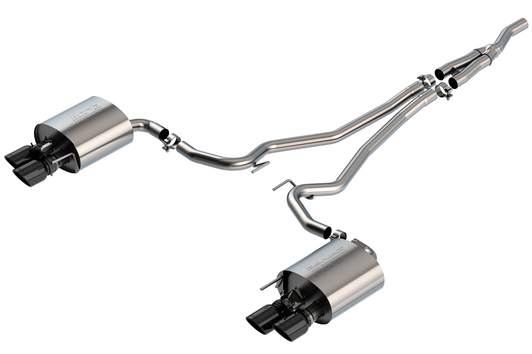 BORLA presents their exhaust systems for the Mustang EcoBoost equipped with Active Exhaust. Our Cat-Back systems include valves that retain the function of the Active Exhaust allowing you to change the volume of your exhaust by selecting different driving modes. The S-Type sound level delivers an aggressive sound without the drone and is tuned specifically for the 2.3L EcoBoost engine. This system features quad tips in a black chrome finish on T-304 stainless steel, but is also available in bright chrome., , Cat-Back Exhaust System, Active Exhaust Valves, S-Type Sound Level, No-Drone, Bolt-On Installation, Black Chrome On T-304 Stainless Steel Quad Tips, T-304 Stainless Steel Construction, , Each BORLA Exhaust System is built from premium T-304 austenitic stainless steel to give you the absolute best in performance and durability., , Best of all, BORLA stands behind every system with a Million-Mile Warranty. Just what you'd expect from the world's most experienced (and most winning) exhaust brand.