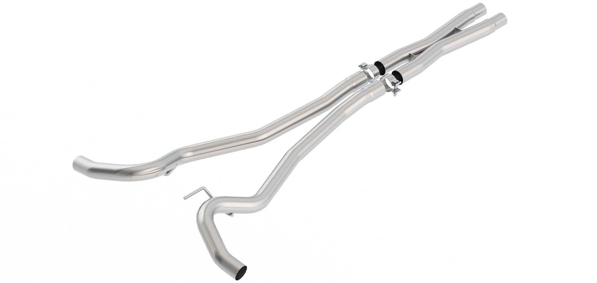 This X-Pipe with Mid-Pipes has been developed specifically for the Mustang GT. It is used to connect to BORLA Axle-Back systems creating a full Cat-Back system with a 2.5" pipe diameter to increase power and performance. This part is only to be used with BORLA Axle-Back systems. It CANNOT be used with other aftermarket parts or Original Equipment and factory rear mufflers. Fits vehicles With or WITHOUT Active Valve Performance Exhaust. Each BORLA Exhaust System is built from premium T-304 austenitic stainless steel to give you the absolute best in performance and durability. Ultra-smooth mandrel bends ensure maximum flow & power, and precision computer numerical control (CNC) manufacturing ensures an accurate fit. Best of all, BORLA stands behind every X-Pipe with Mid-Pipes assembly with a Million-Mile Warranty. Just what youd expect from the worlds most experienced (and most winning) exhaust brand.