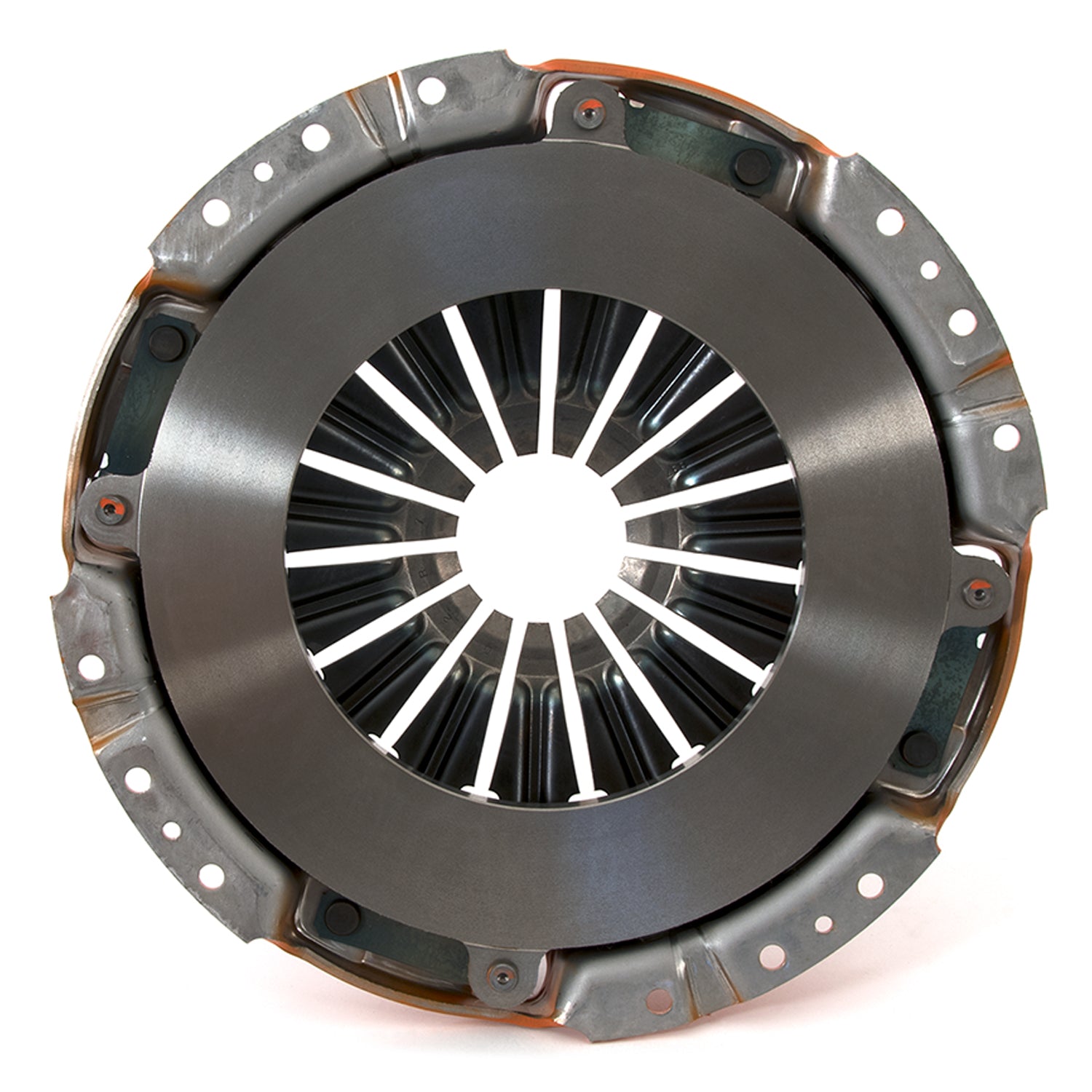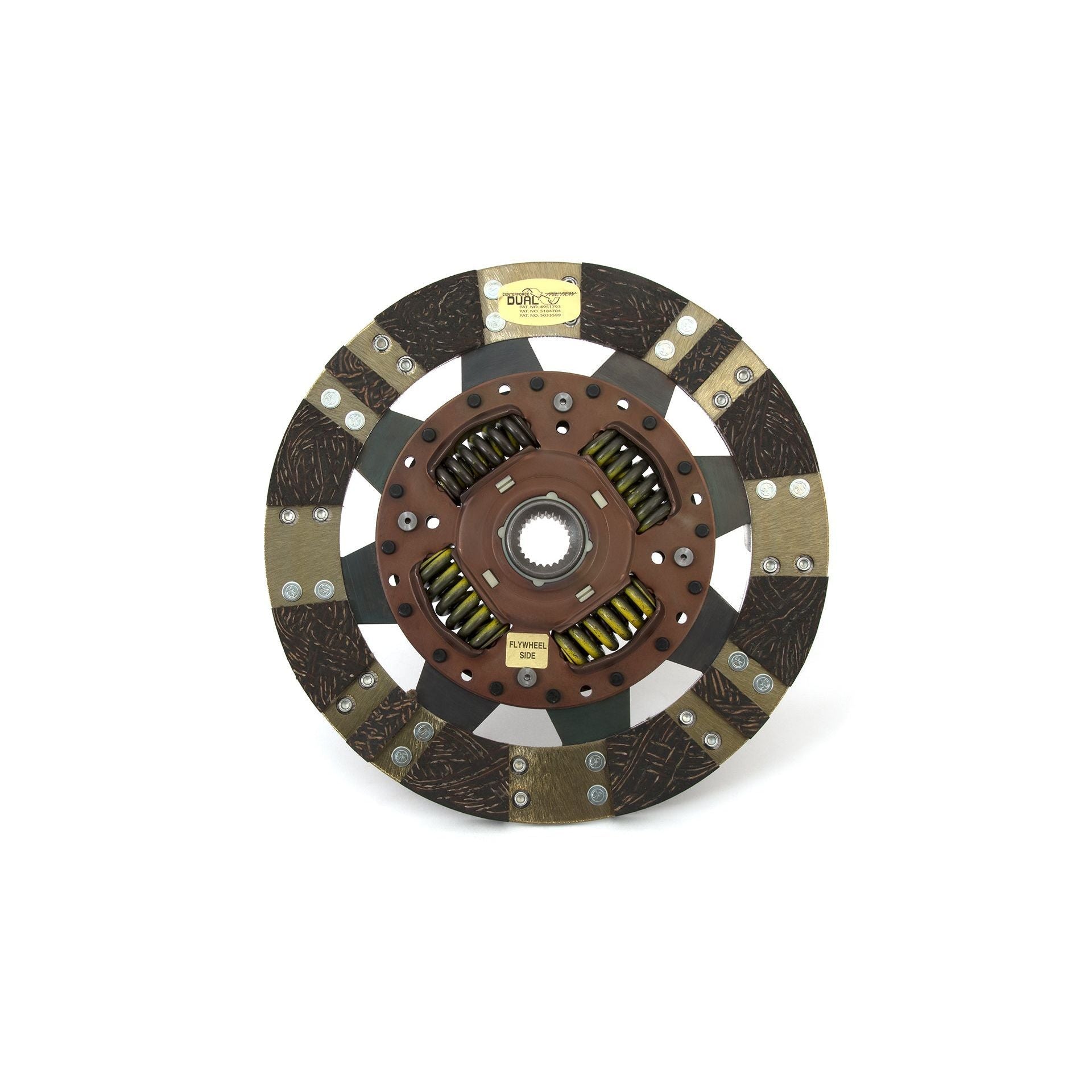 The Centerforce(R) Dual Friction(R) Clutch Series is a performance matched pressure plate & disc combination featuring the patented Centerforce centrifugal weight system (where applicable) and specialized machining processes to provide a performance clutch that offers exceptional street characteristics, while offering outstanding holding-capacity and durability. Furthermore, the Centerforce Dual Friction disc has an organic full facing on one side for longevity and an organic segmented facing on the other side providing increased holding capacity. Some applications have the organic segmented facings of both sides. The Dual Friction clutch is engineered for those who are looking for the ultimate in street/strip holding power and performance without sacrificing pedal effort and driver control. While the Dual Friction has been engineered primarily as a street clutch it can be used in mild competition applications.