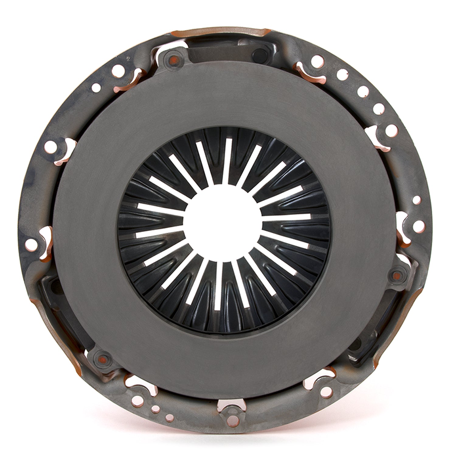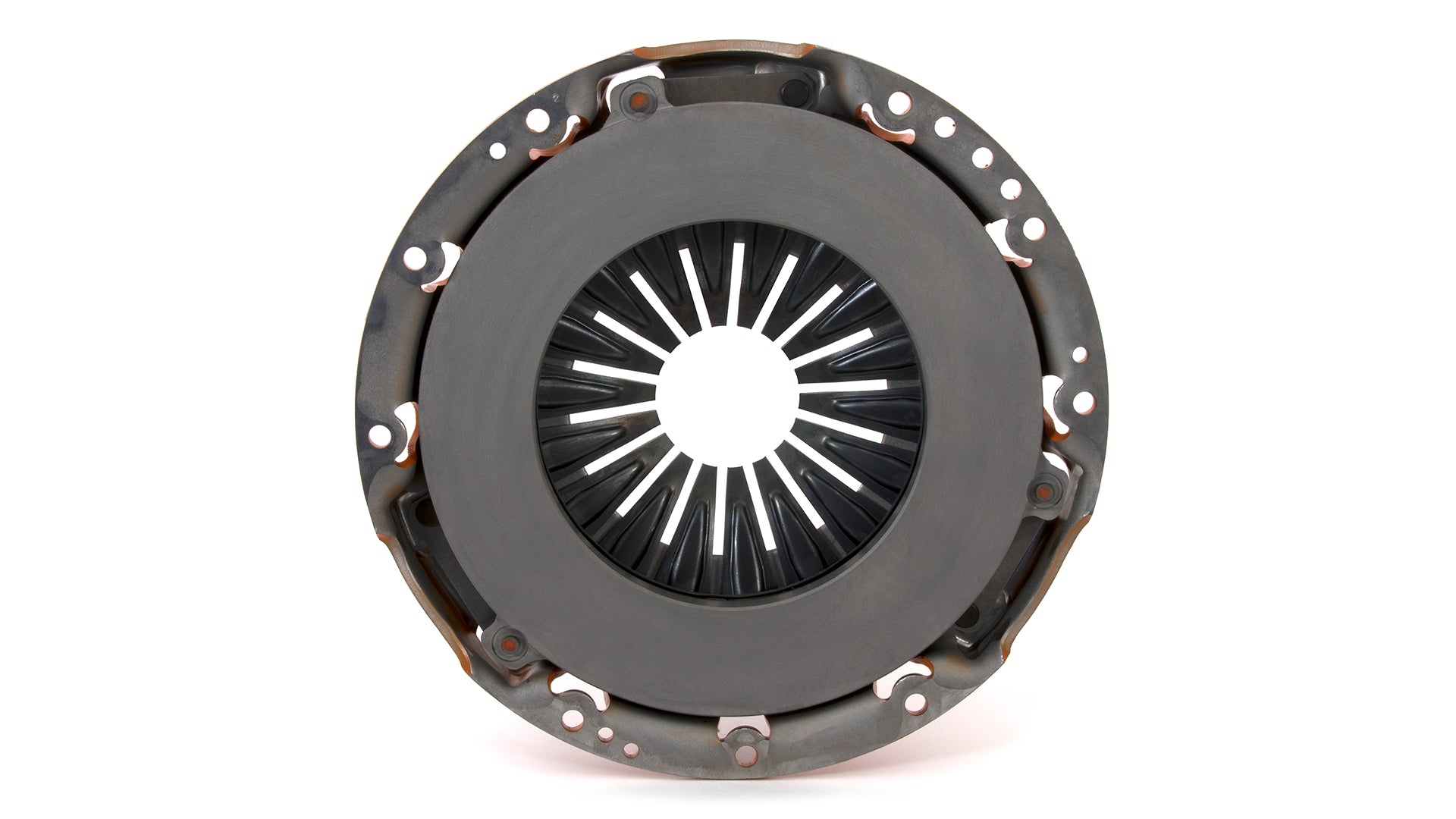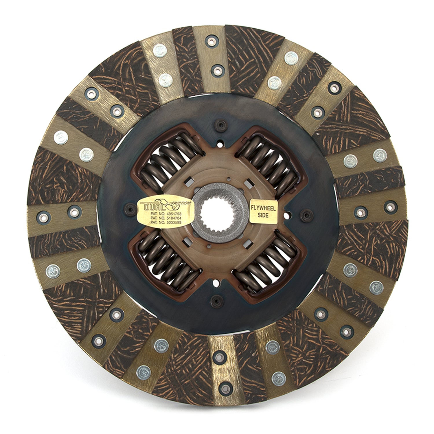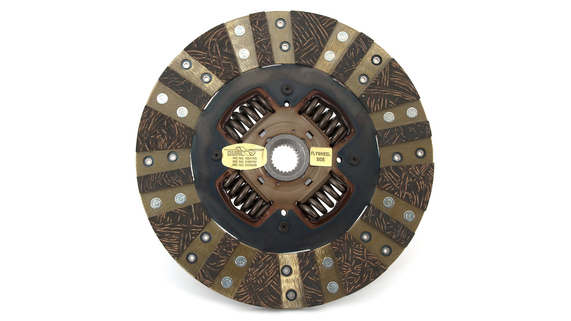 The Centerforce(R) Dual Friction(R) Clutch Series is a performance matched pressure plate & disc combination featuring the patented Centerforce centrifugal weight system (where applicable) and specialized machining processes to provide a performance clutch that offers exceptional street characteristics, while offering outstanding holding-capacity and durability. Furthermore, the Centerforce Dual Friction disc has an organic full facing on one side for longevity and an organic segmented facing on the other side providing increased holding capacity. Some applications have the organic segmented facings of both sides. The Dual Friction clutch is engineered for those who are looking for the ultimate in street/strip holding power and performance without sacrificing pedal effort and driver control. While the Dual Friction has been engineered primarily as a street clutch it can be used in mild competition applications.
