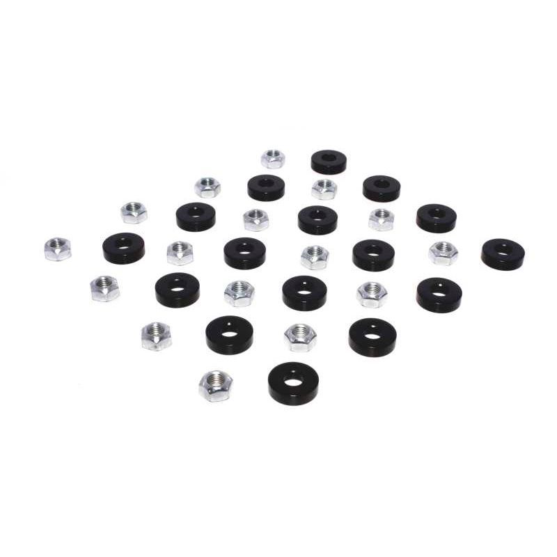 This 4610-16 adjusting nut kit includes a set of 16 washers and nuts to convert your Ford 302 and 351 Windsor rockers to an adjustable valvetrain. Fits 5/16" studs.